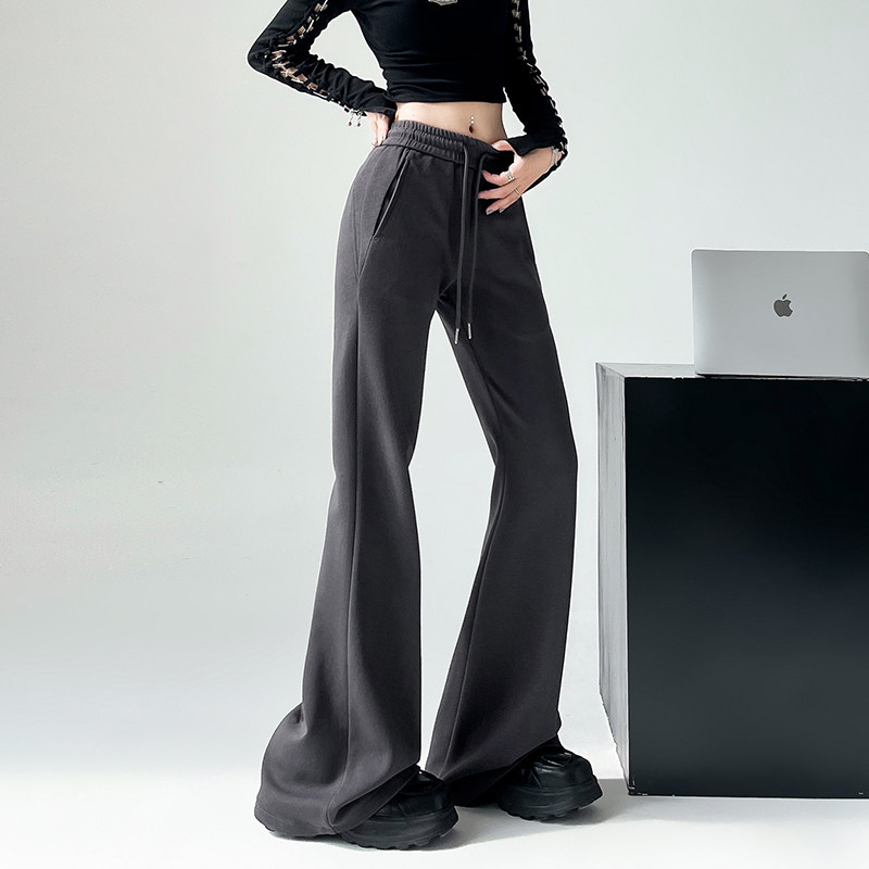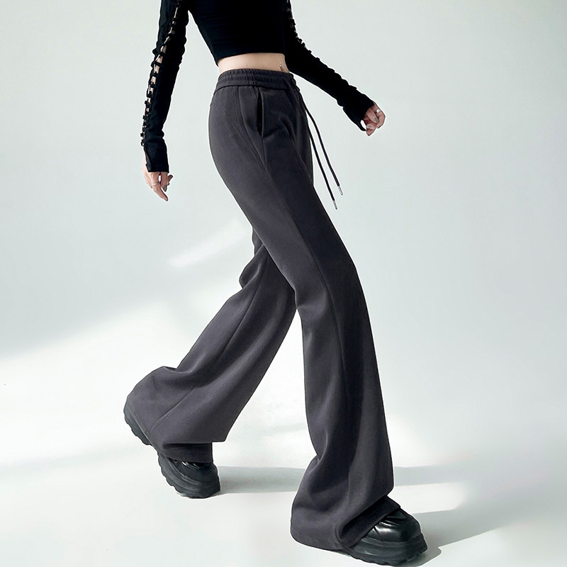 📚 150小个子美式喇叭卫裤女秋冬季加绒加厚155高腰垂感拖地马蹄裤XS