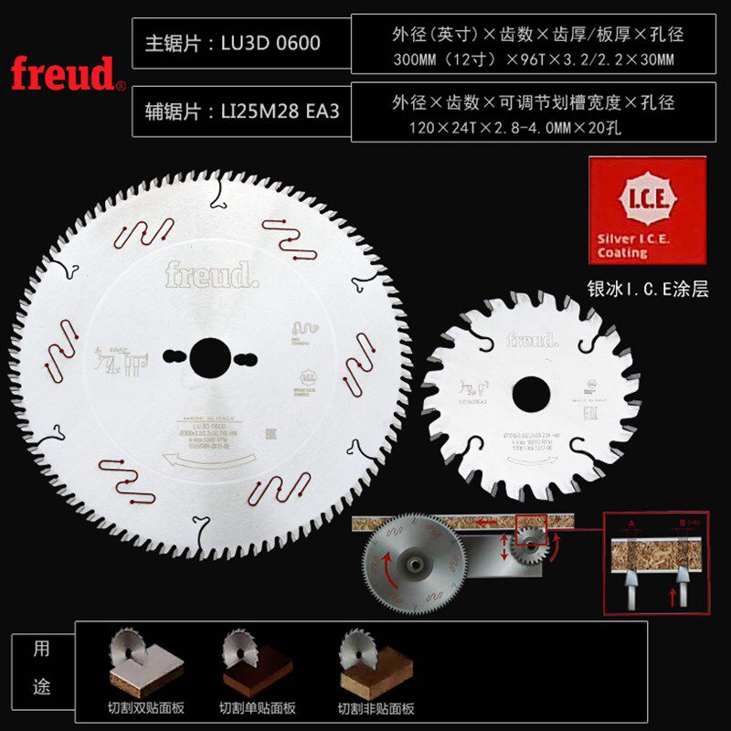 📚 原装进口锐无敌FREUD木工精密裁板锯推台锯专用合金锯片12寸96齿