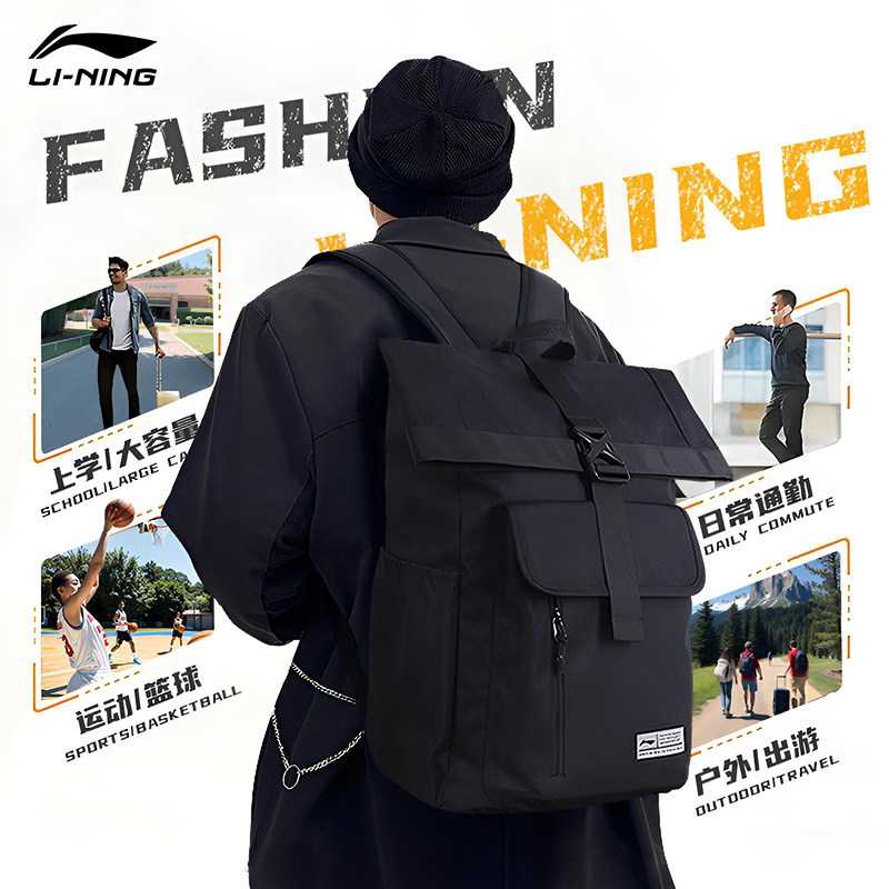 📚 李宁书包男护脊户外大容量双肩包休闲运动简约篮球高中学生背包女