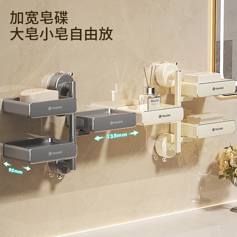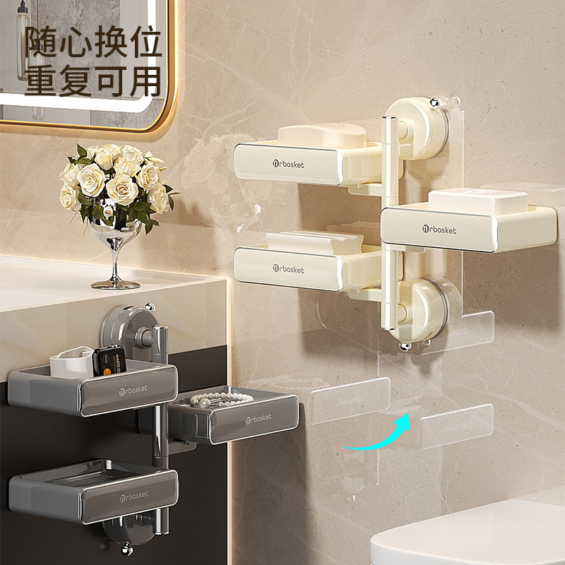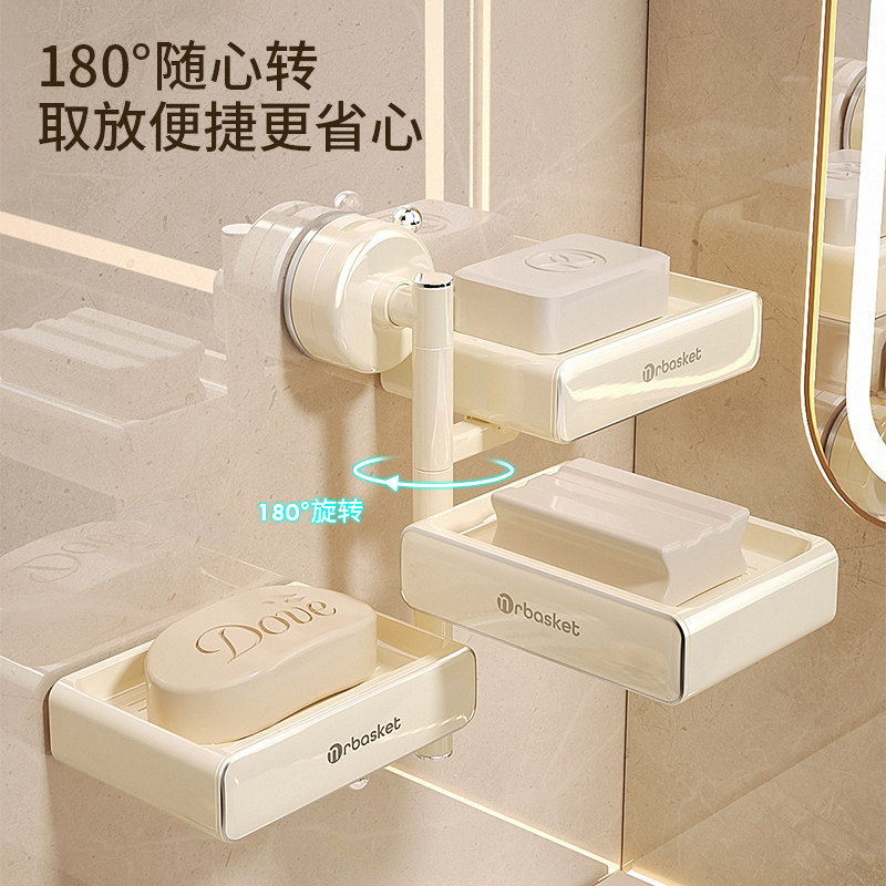 📚 吸盘旋转肥皂盒壁挂式免打孔沥水香皂置物架卫生间浴室多层香皂盒