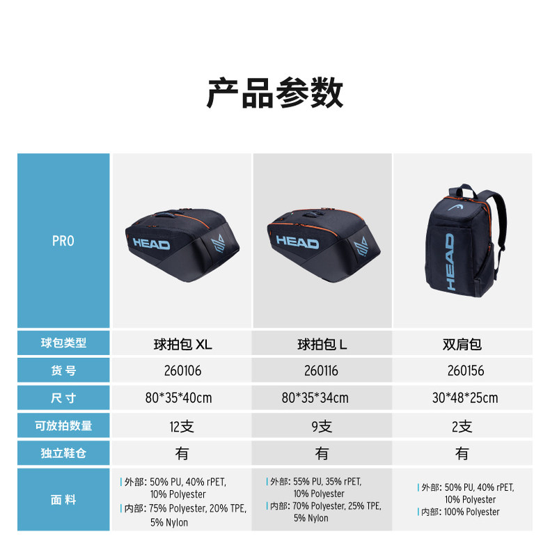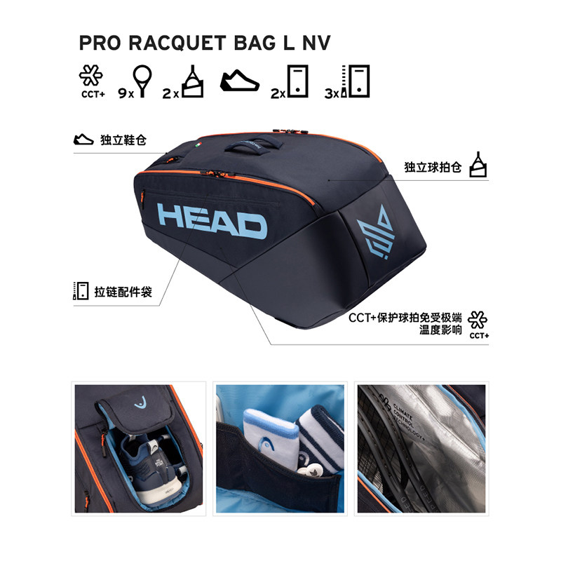 📚 HEAD海德网球包26新PRO系列辛纳赛场同款9支装多功能球拍包230116