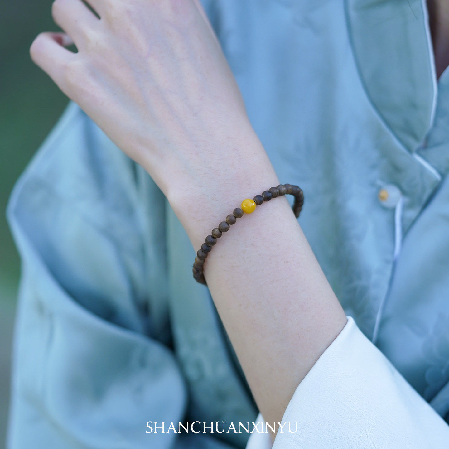 📚 芽庄奇楠沉香檀木质手串转运招财纯天然鸡油黄蜜蜡聚气守财手链女