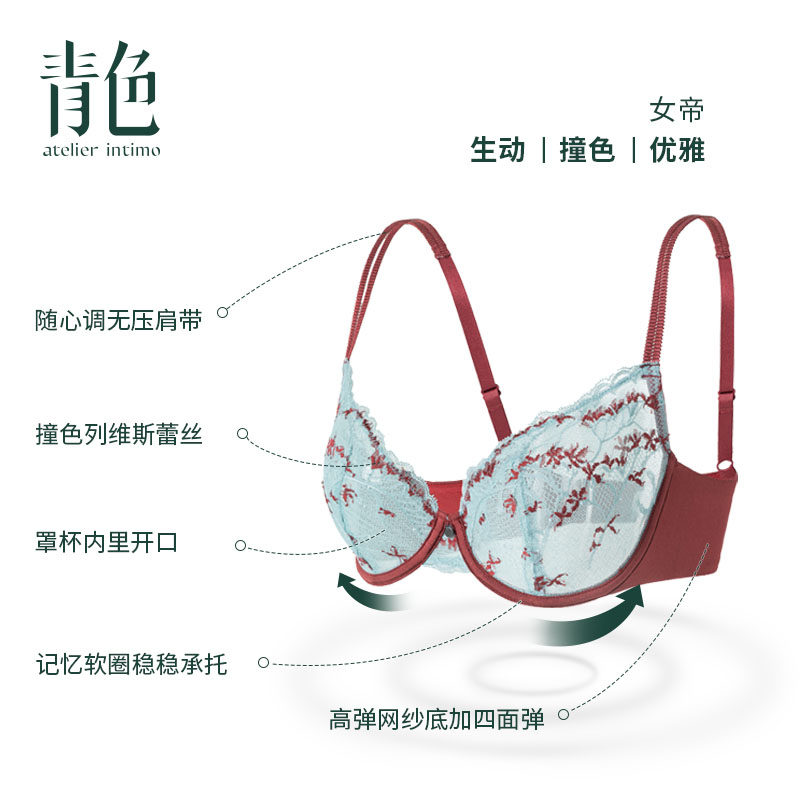 📚 【女帝】青色性感睫毛蕾丝超薄款大胸显小文胸收副乳防下垂内衣