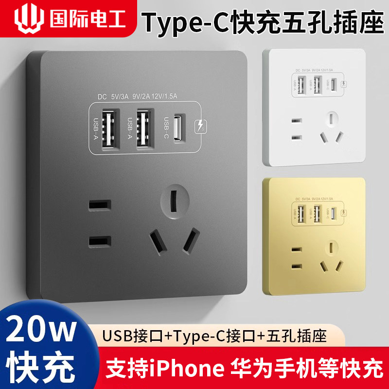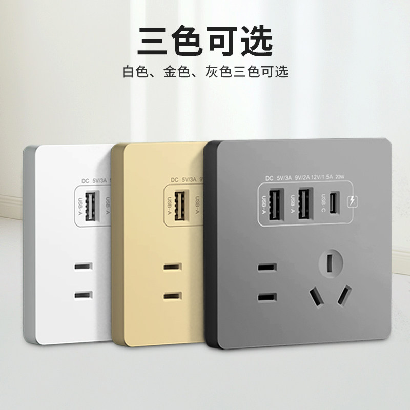 📚 86型多孔位带usb插座typec面板20W快充墙壁家用开关五孔四孔二孔