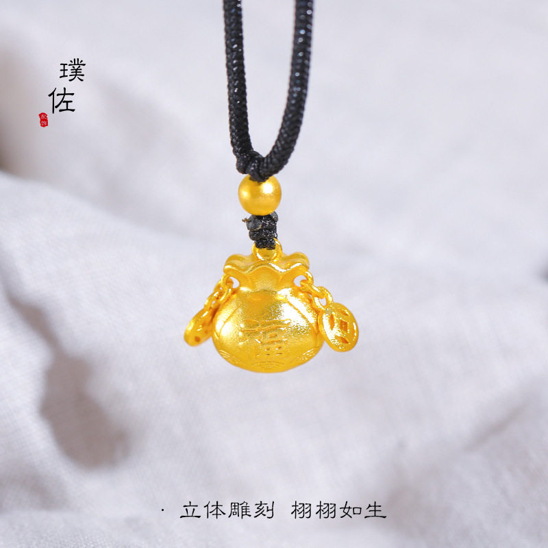 📚 久不掉色越南沙金福字钱袋子吊坠项链招财小福袋黑绳毛衣链项链女