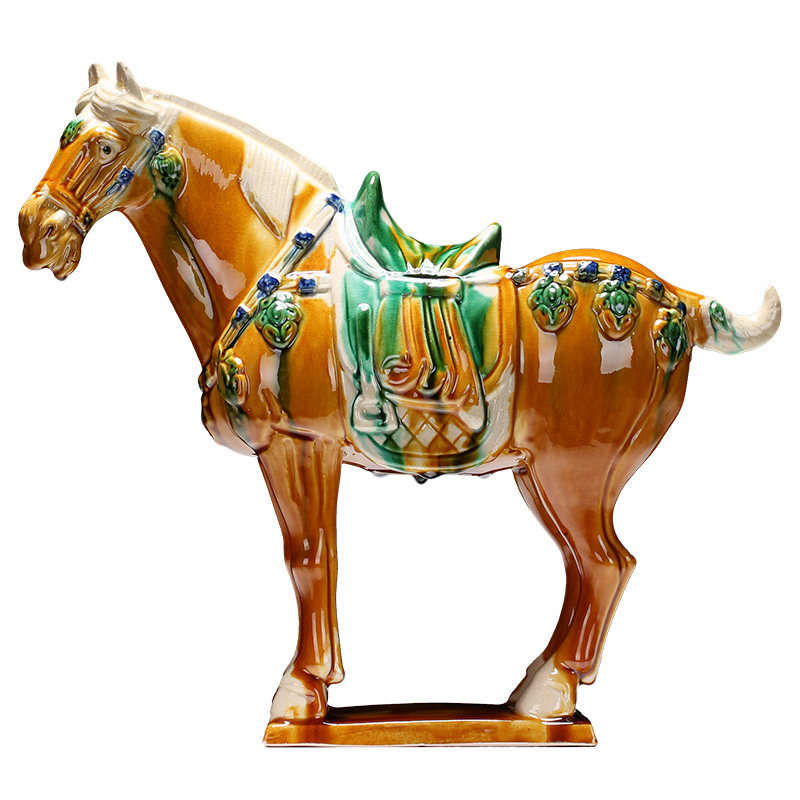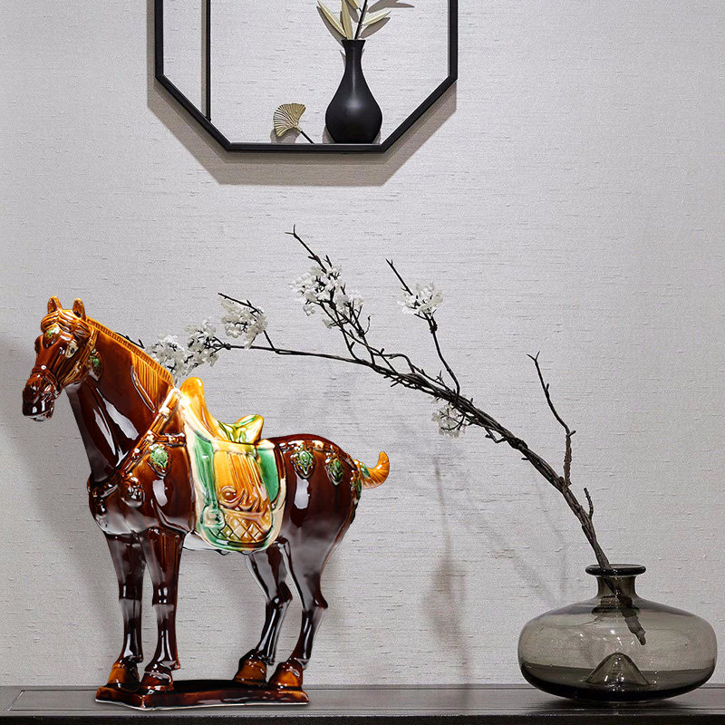 📚 博艺萱唐三彩马摆件中式家居装饰陶瓷马客厅电视柜玄关工艺品招财
