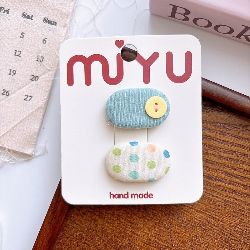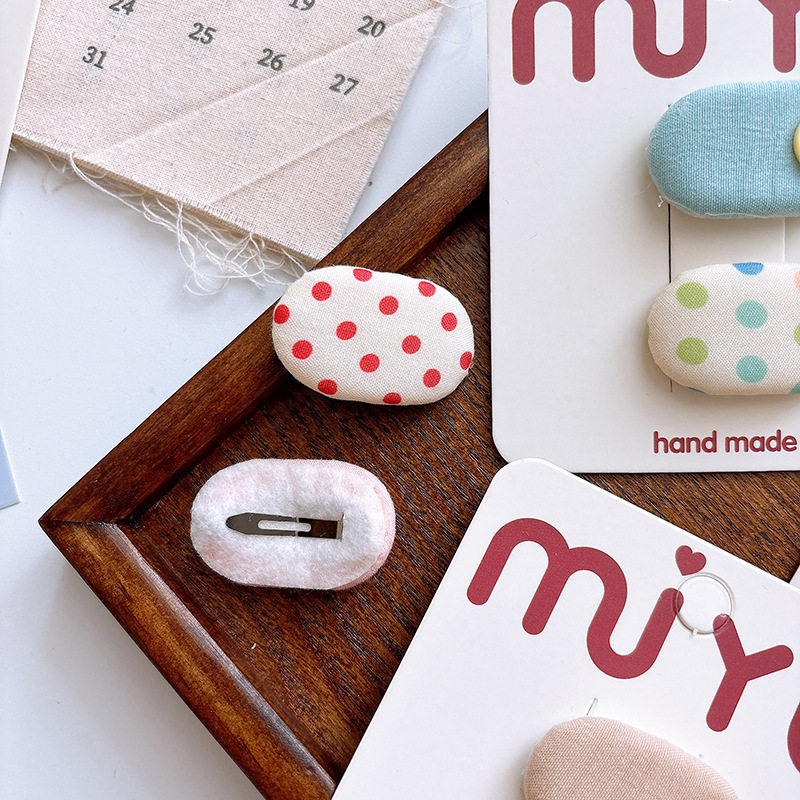 📚 卷糖果儿童发夹布艺波点格子纽扣椭圆bb夹女宝宝碎发夹侧边夹发卡