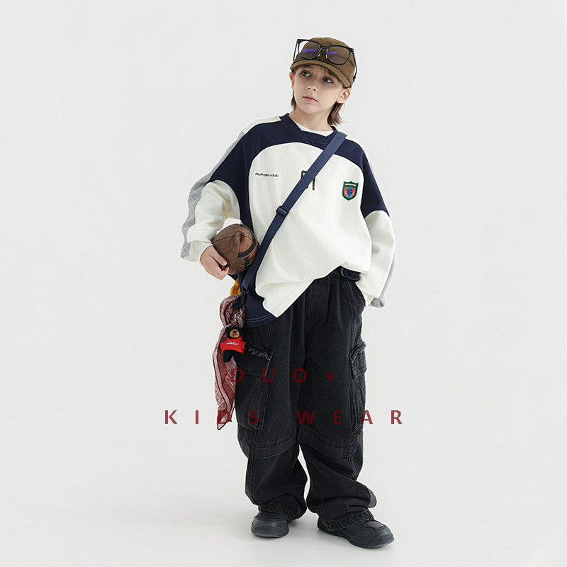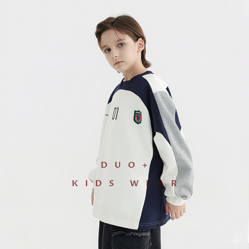 📚 多加潮牌男童机车加绒卫衣2025冬装儿童加厚圆领卫衣中大童时髦