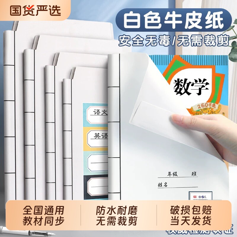 📚 迪斯熊2025新款白色牛皮纸包书皮书套书皮纸书壳小学生包装纸一年级二三四书本保护套中国风初中自粘纸质环保