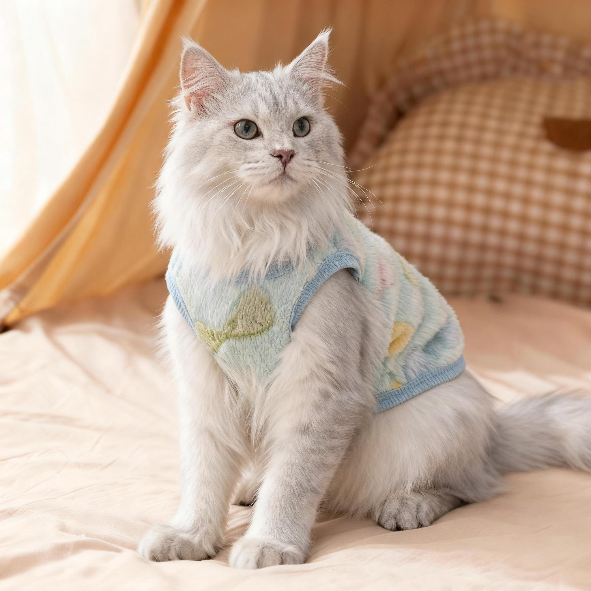 📚 猫咪防掉毛衣服薄款秋冬保暖装德文暹罗猫穿背心金渐层布偶猫专用