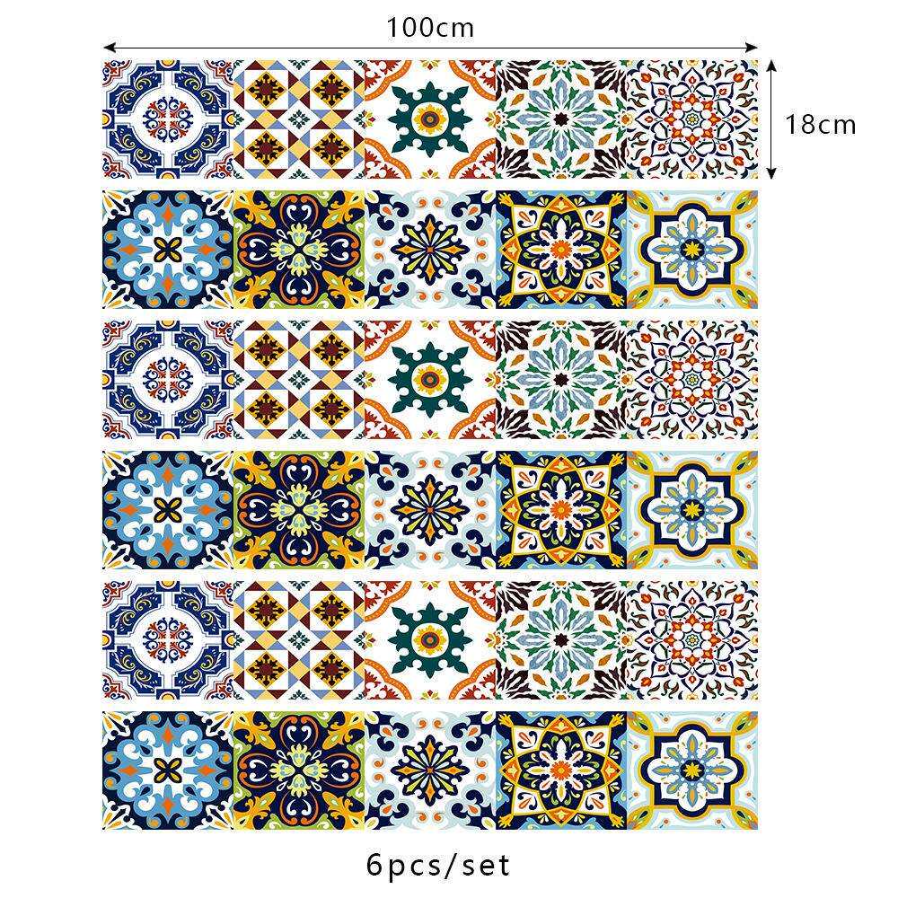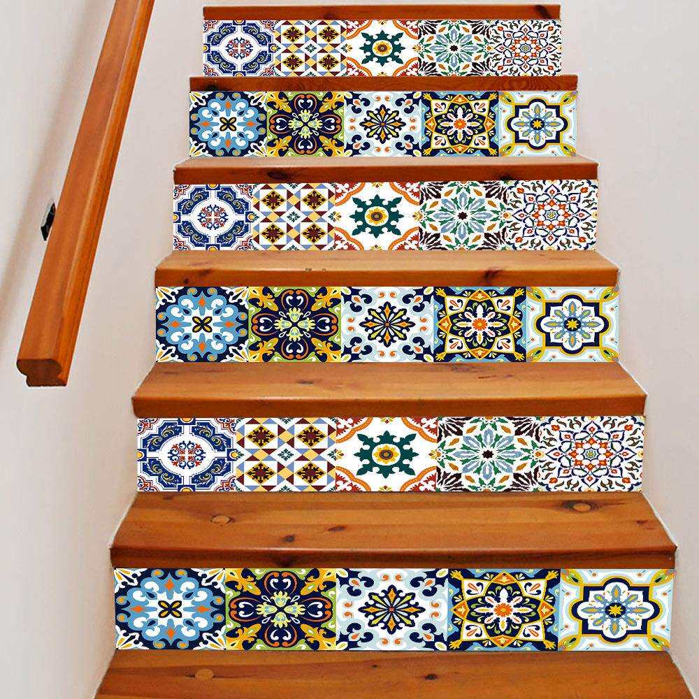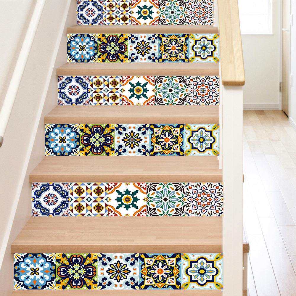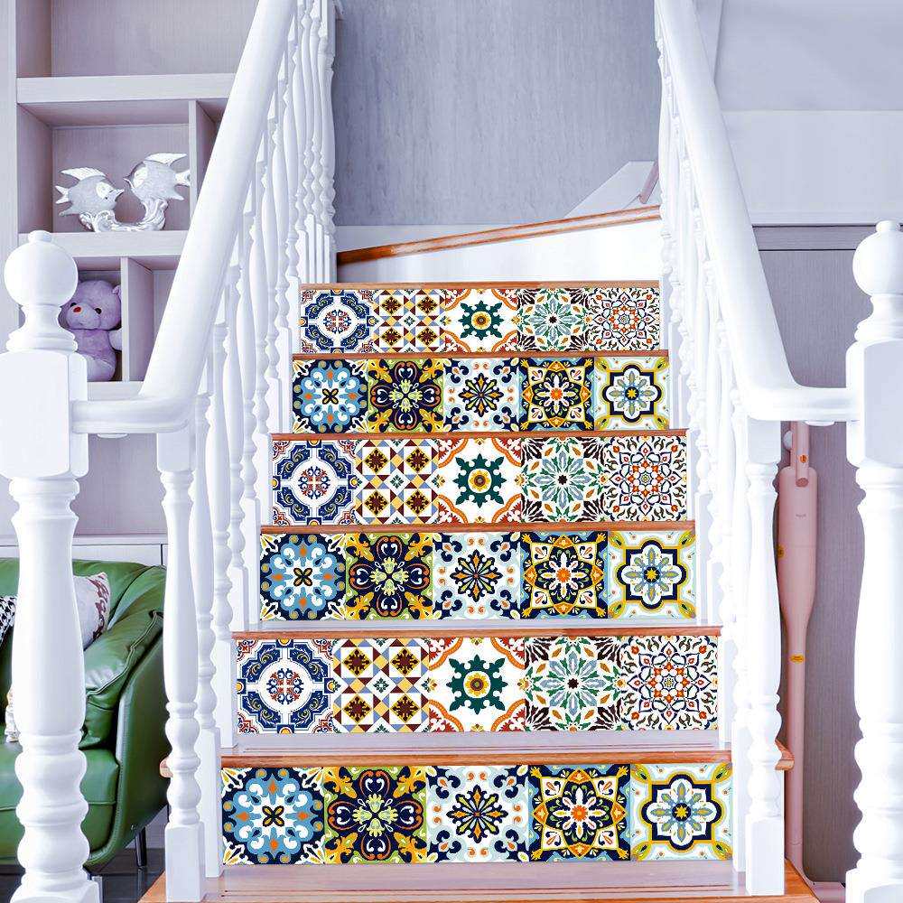 📚 6片仿真复古花砖楼梯贴家居踏步翻新装饰自粘防水墙贴跨境工厂