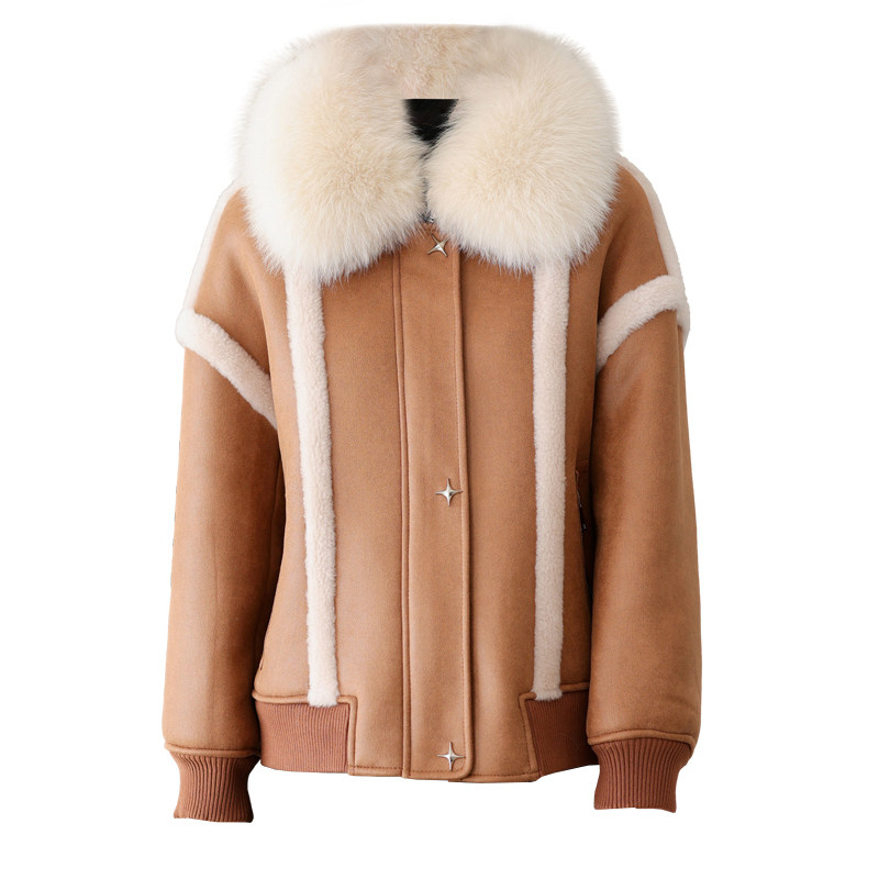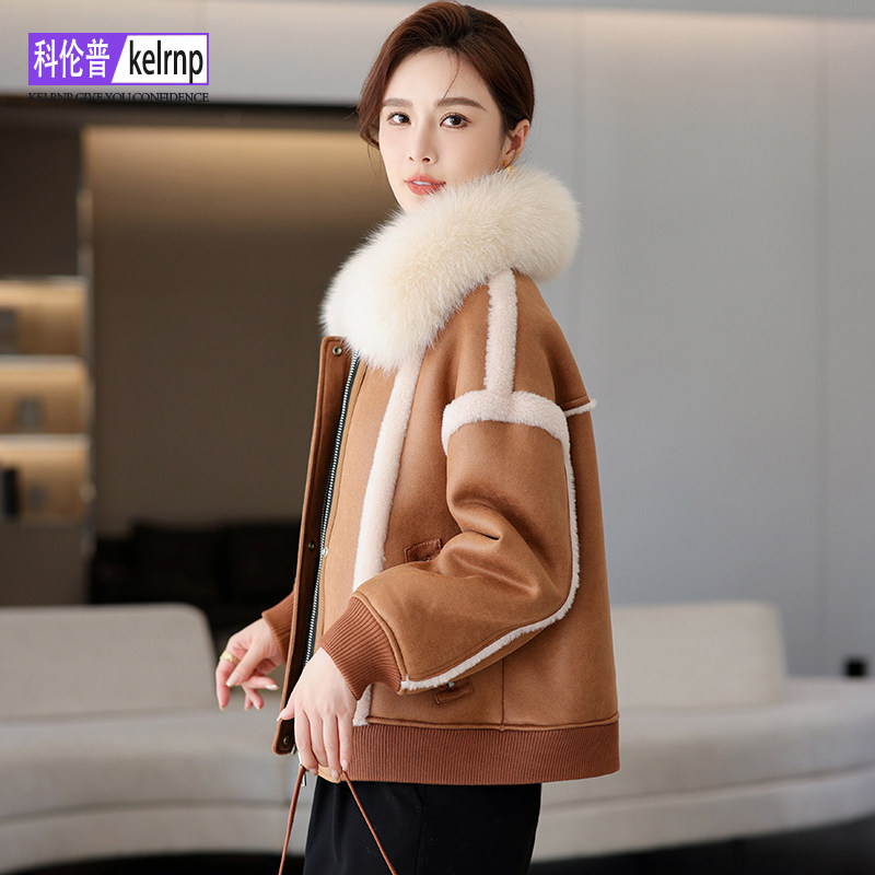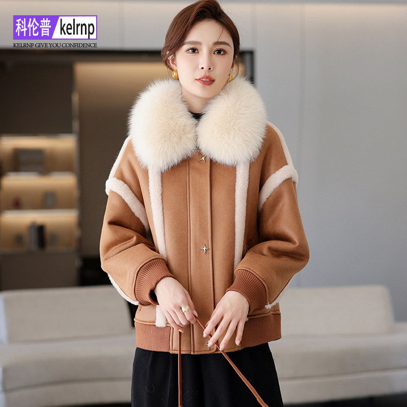 📚 羊剪绒大衣女2025冬新时尚原创高端狐狸毛领羔羊毛毛颗粒皮草外套