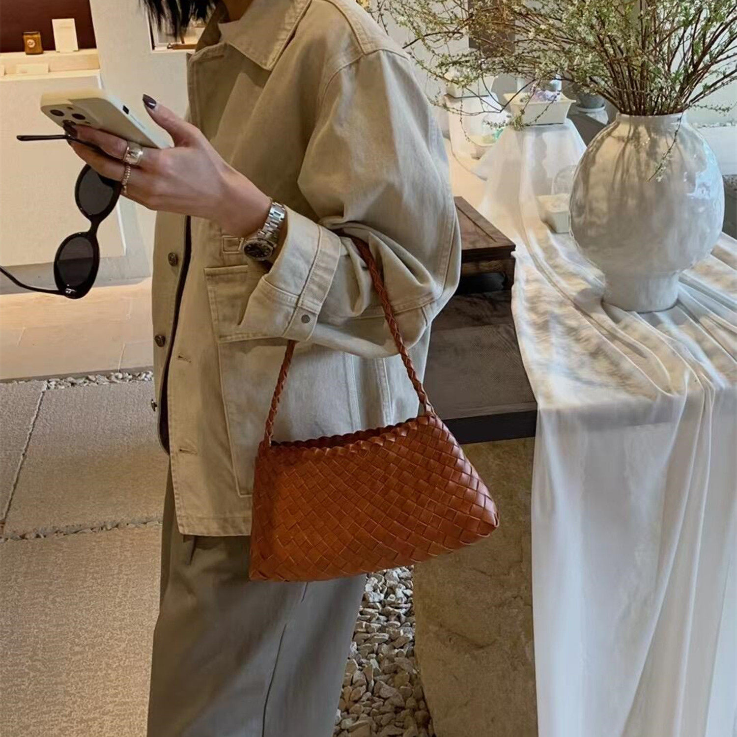 📚 手工编织包8943法式优雅菜篮子2025新款真皮手提包高级感单肩包