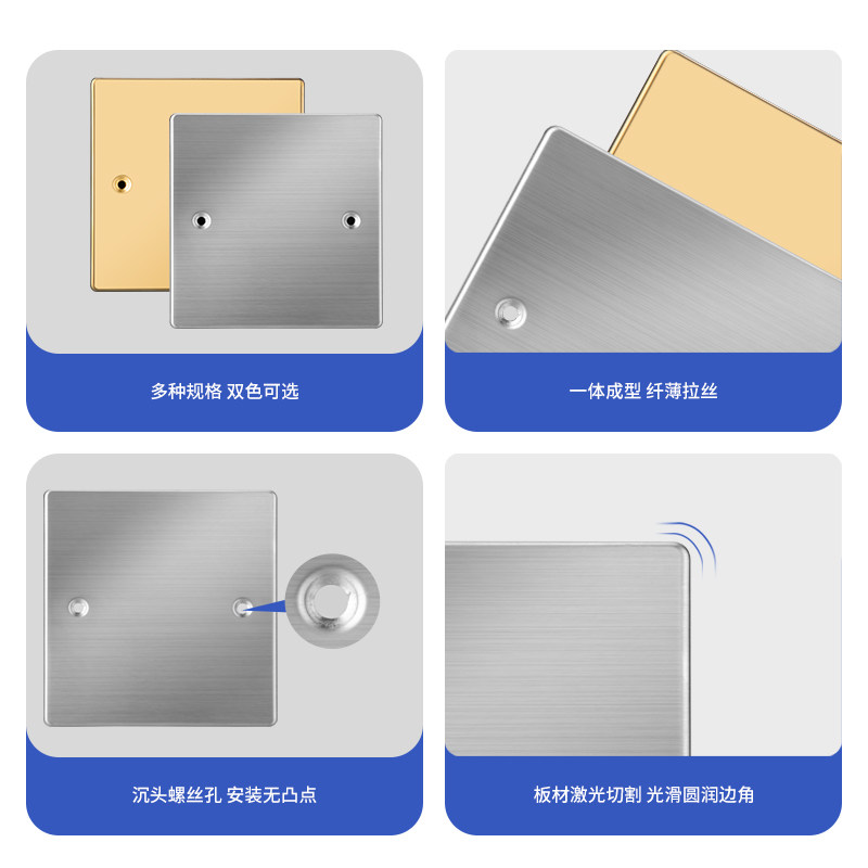 📚 86型不锈钢插座面板底盒120型地插盖板盲板空白面板装饰盖遮挡盖