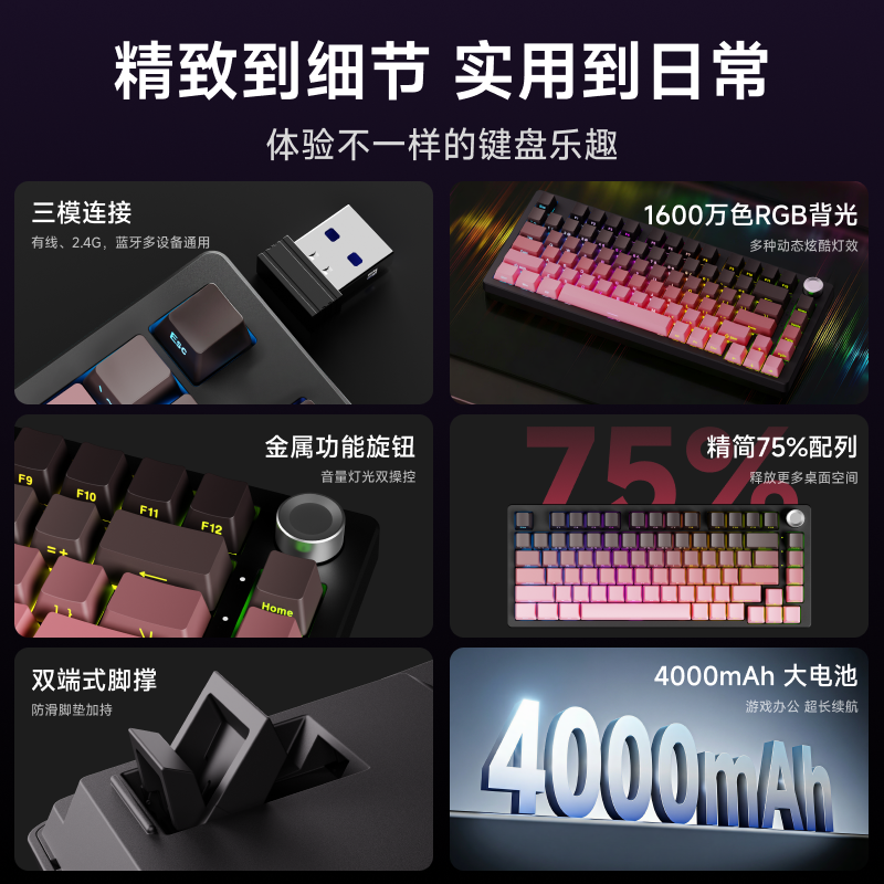 📚 前行者DK75机械键盘81键无线便携式三模电竞游戏青轴RGB灯效电脑