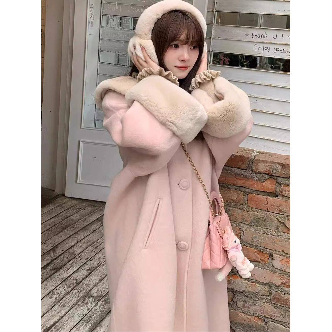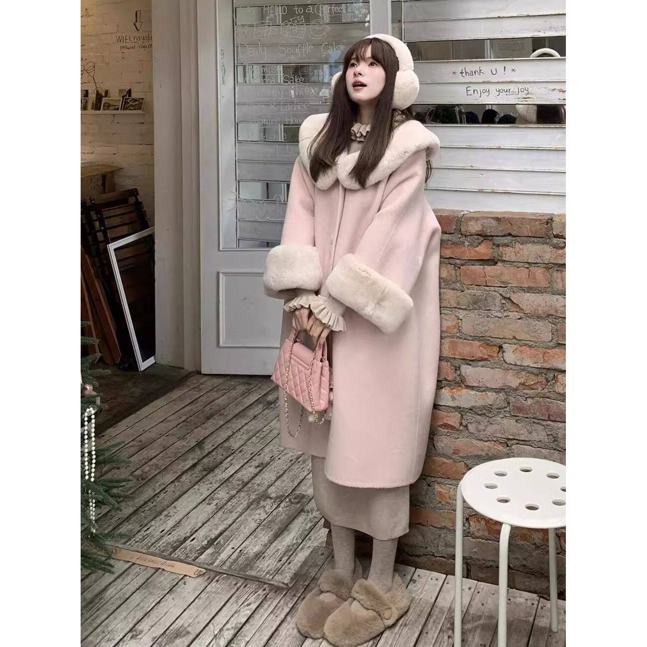 📚 慢慢羚羊/温柔少女斗篷茧型大衣甜美风气质连帽毛毛领