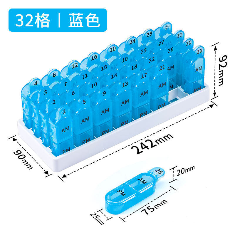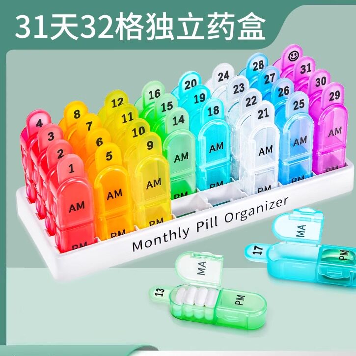 📚 一个月31天32格独立可拆分密封分装早晚两顿药盒大容量PP塑料盒