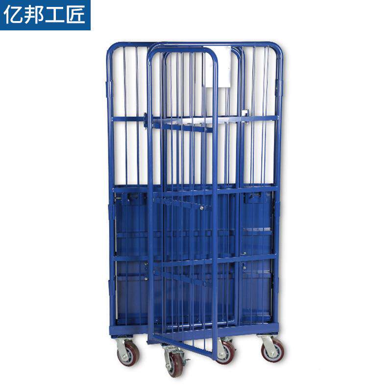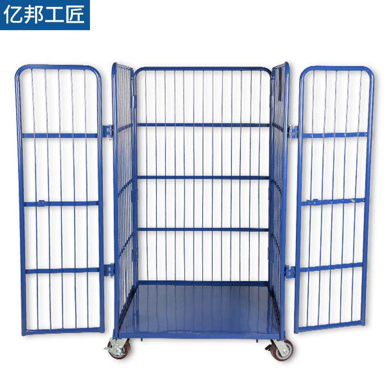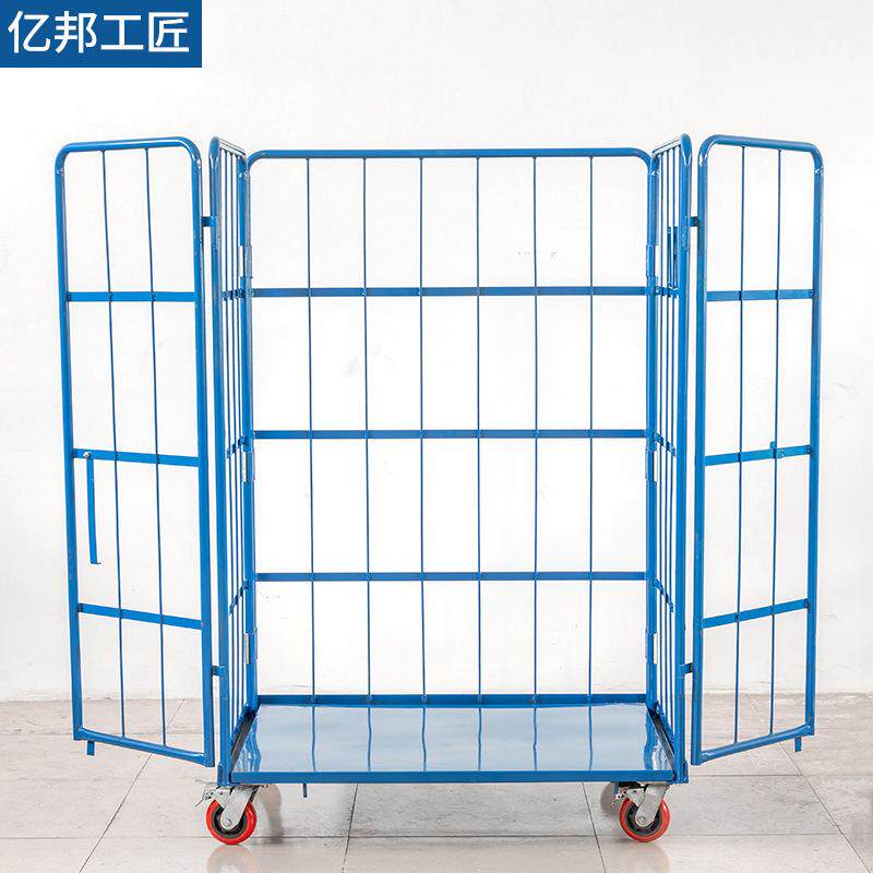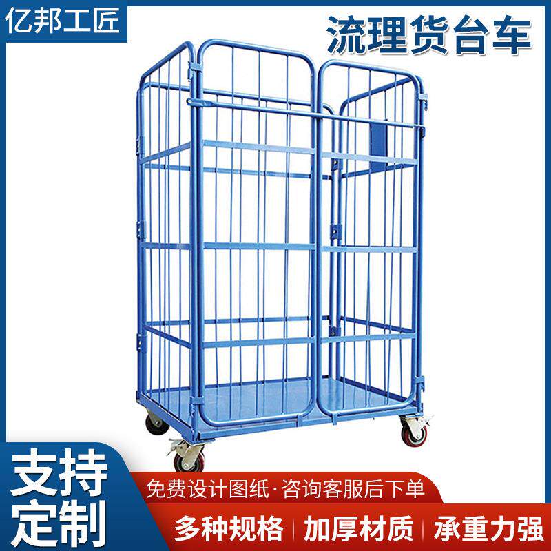 📚 仓储物流笼车折叠金属台车网格推拉车仓库周转车可移动货台车