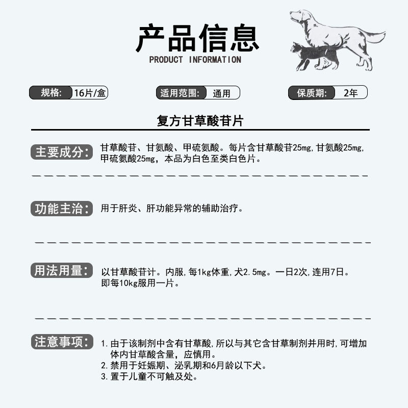 📚 易甘安苷乐宁复方甘草酸苷片宠物猫狗黄疸急慢性肝炎肝硬化护肝片