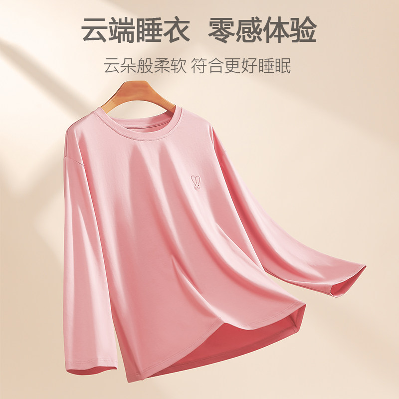 📚 女士睡衣上衣单件女长袖纯棉t恤上半身打底春秋款家居服秋季大码