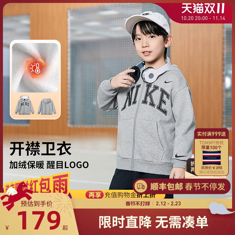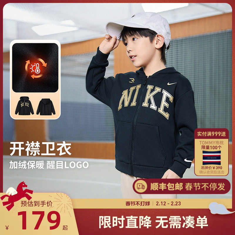 📚 Nike 3brand儿童卫衣开衫男童加绒上衣2025冬季童装运动女童外套