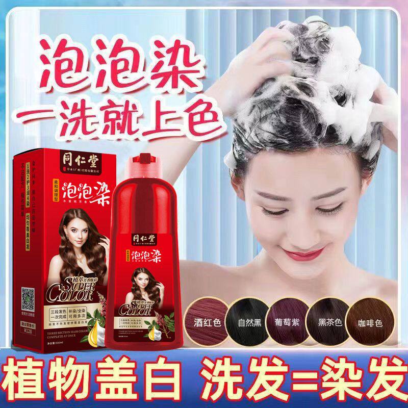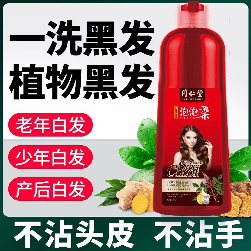 📚 南京同仁堂一洗黑染发剂植物正品不沾头皮纯泡泡染天然高档染发膏