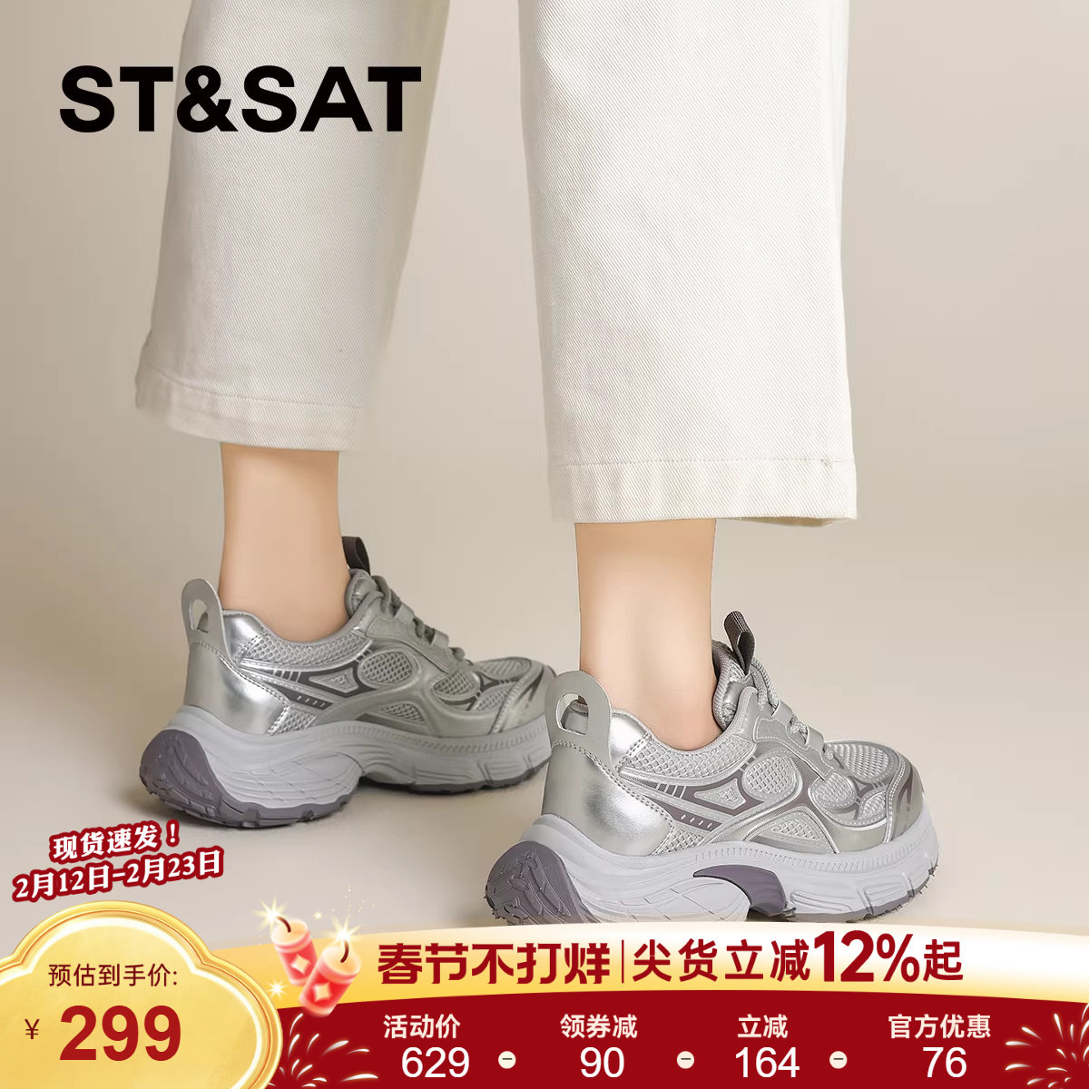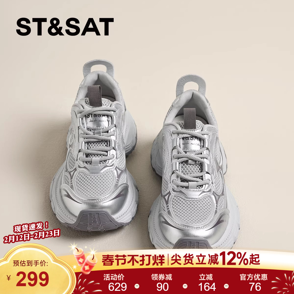 📚 星期六银色老爹鞋女款2025新款春季时尚百搭增高运动休闲鞋