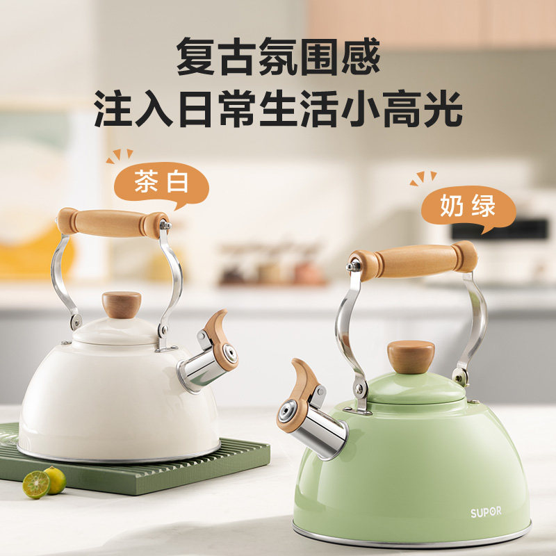 📚 苏泊尔烧水壶家用304不锈钢大容量磁炉通用加厚鸣笛热开水壶