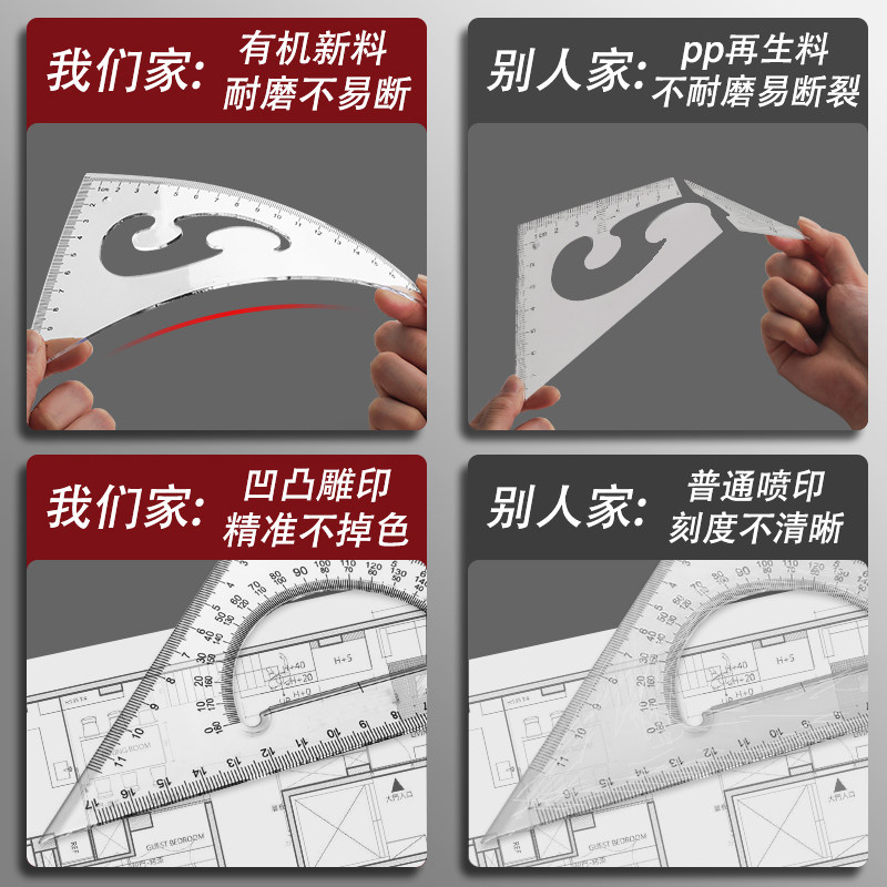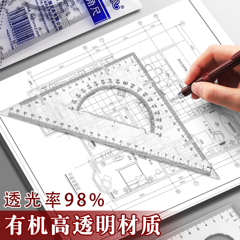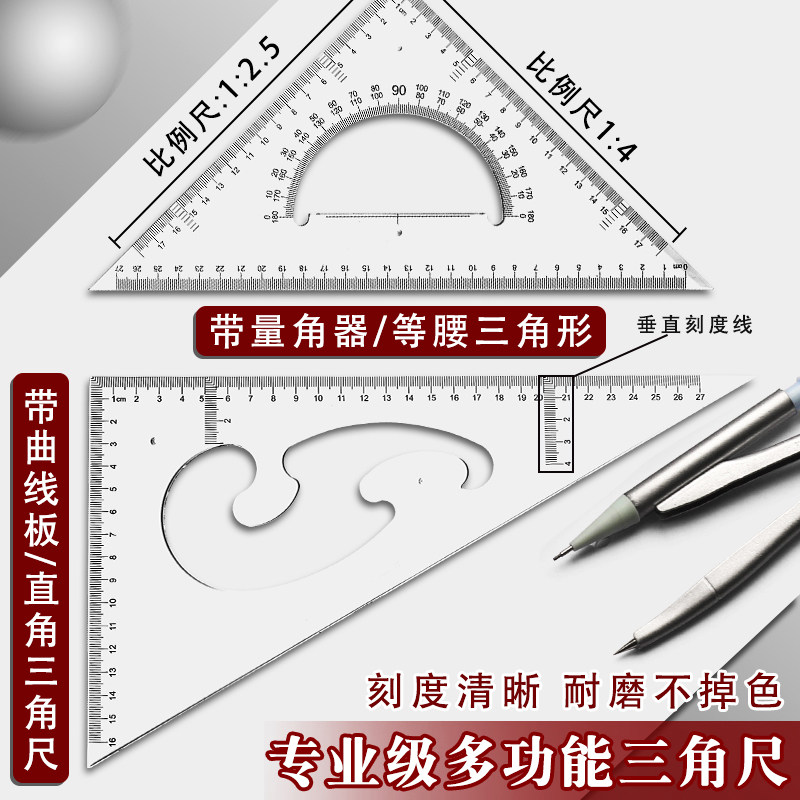 📚 多功能高精度三角尺套装大号加厚绘图尺建筑工程制图测量设计教学小学生初中生30cm45cm三角板带云尺教师用