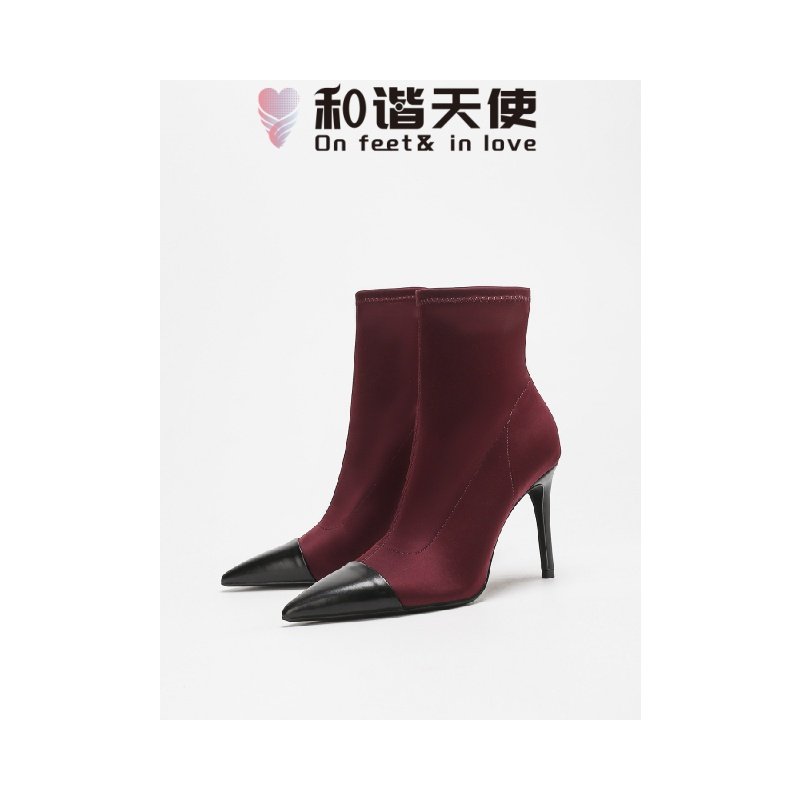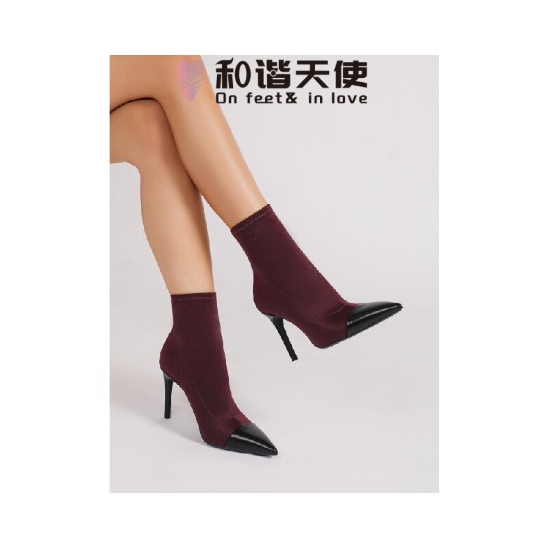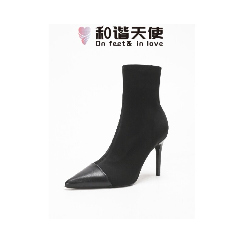 📚 On feet& in love时尚秋冬新款欧美风高跟弹力靴女气质百搭中筒靴