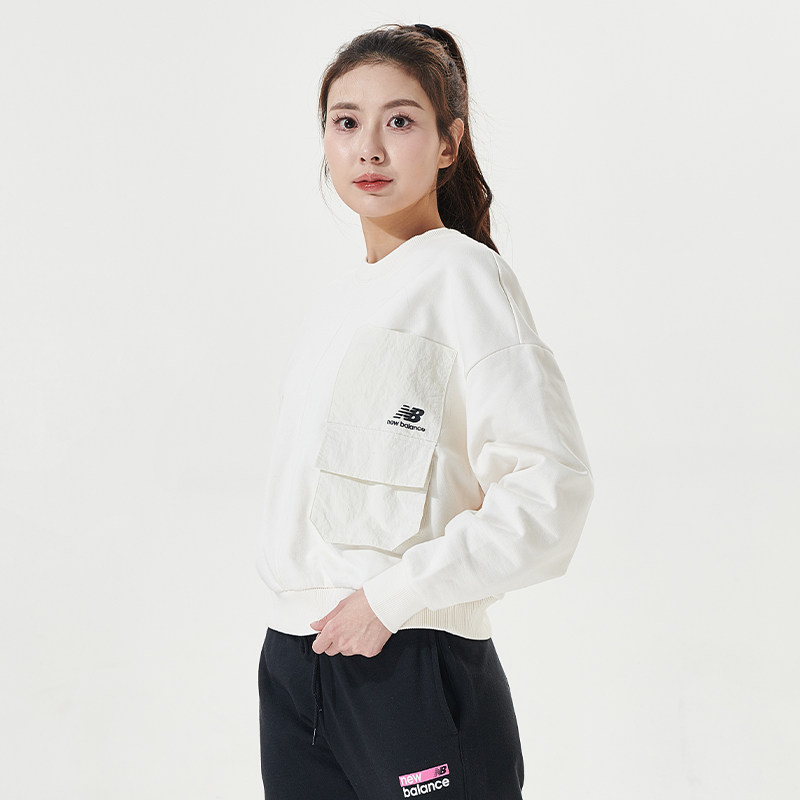 📚 New Balance 女款针织上衣春秋款宽松长袖卫衣AWT13331-IV