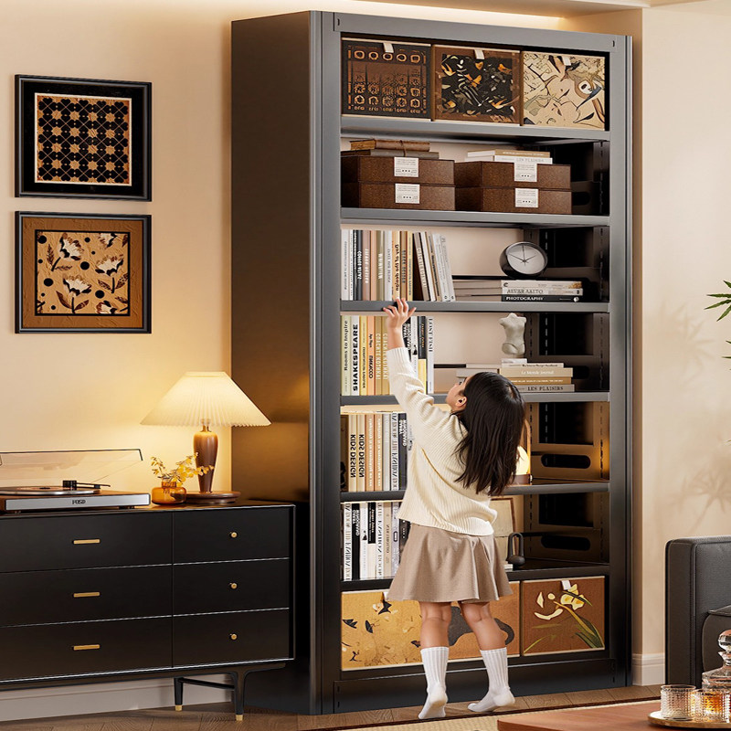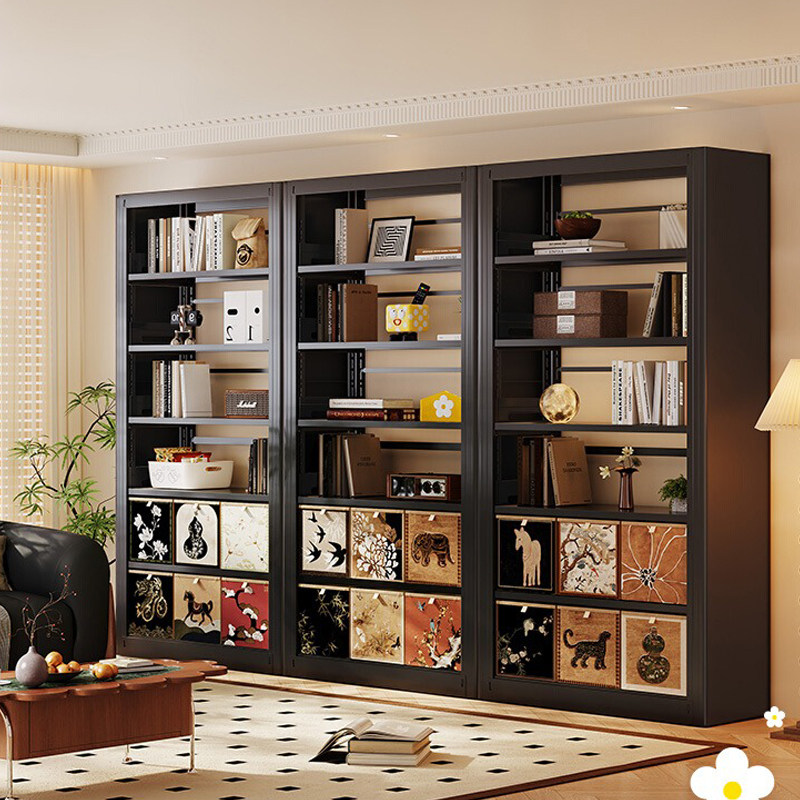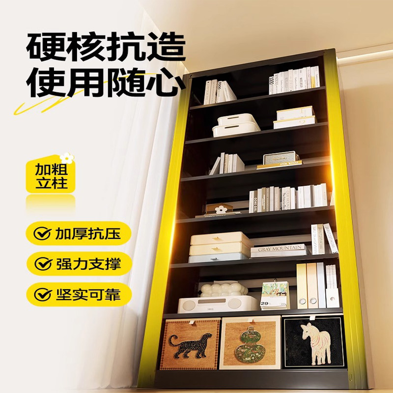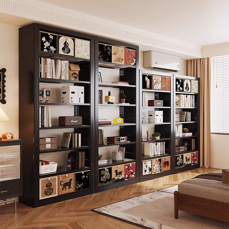 📚 中古风书架图书馆儿童家用钢制书架落地置物架一体靠墙书籍架柜子