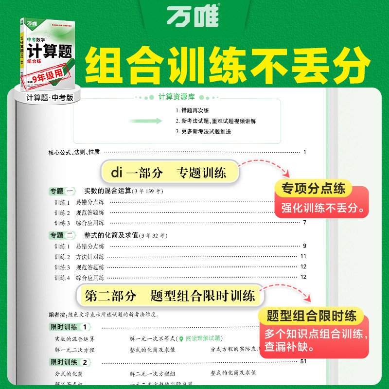 📚 2026版万唯初中数学计算题组合练几何辅助线几何模型数学解答题不丢分物理计算题不丢分初中一二三七八九年级数学物理计算题练习册