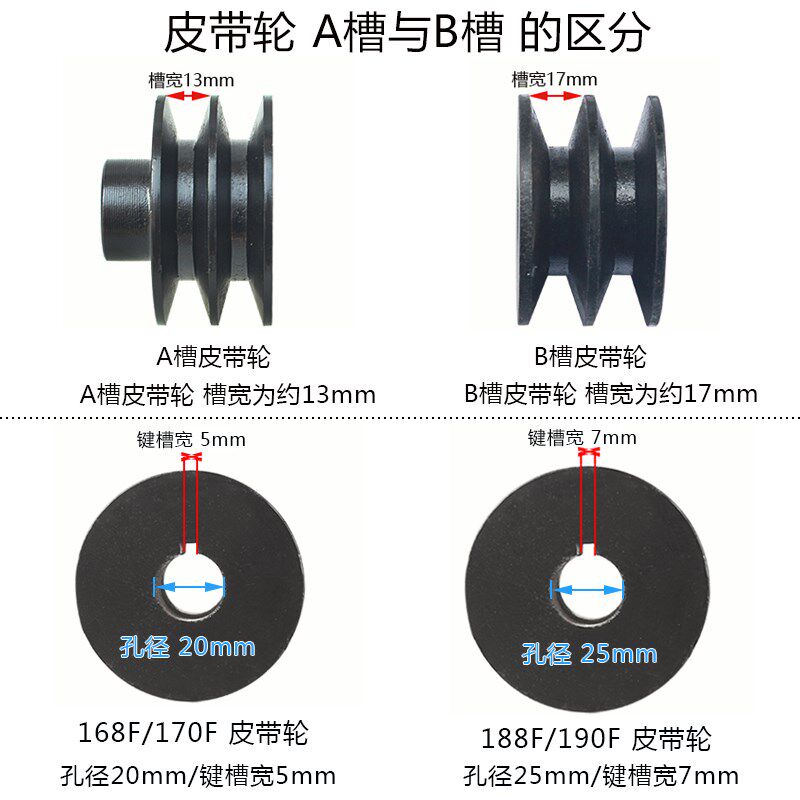 📚 20mm25轴A B槽双槽皮带轮汽油柴油水泵平键螺纹花键微耕机水冷175