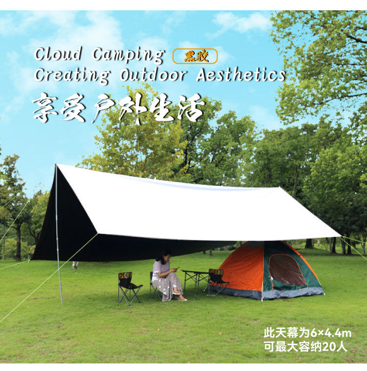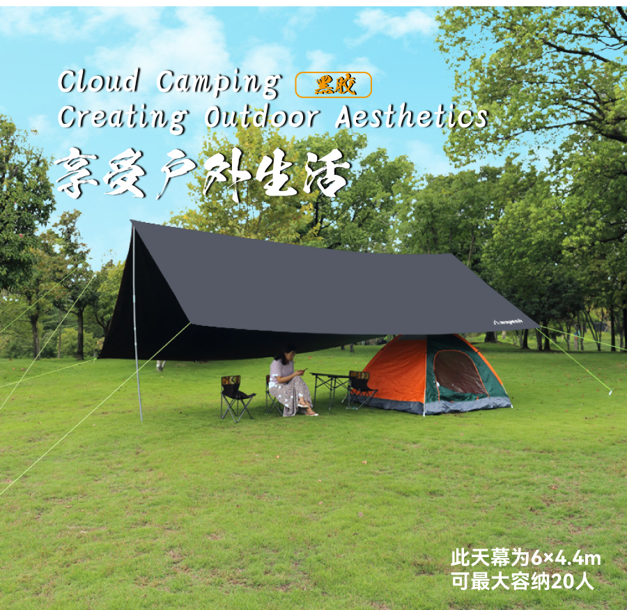 📚 沃野户外超大防雨防晒黑胶天幕帐篷钓鱼野营露营车边帐