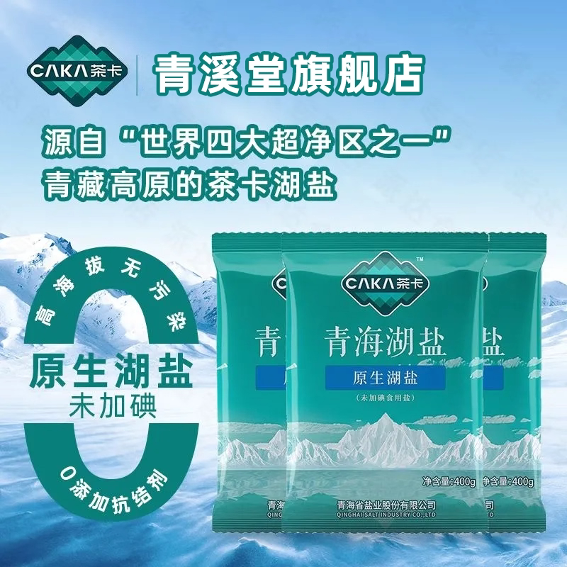 📚 正品青海天然茶卡湖盐400克*50包未加碘0添加0抗结剂细盐家用食盐