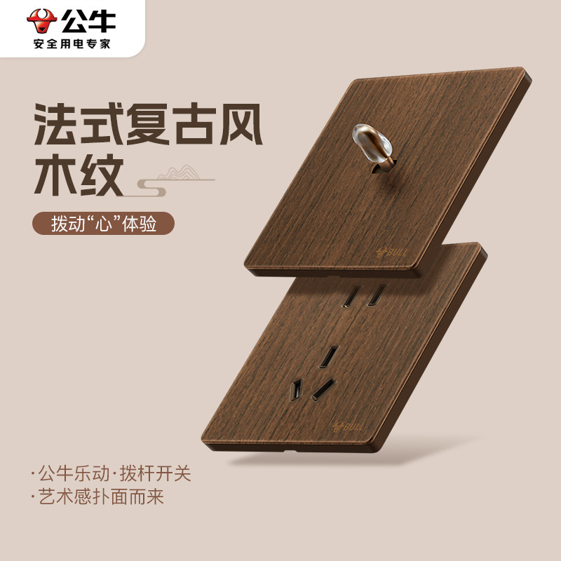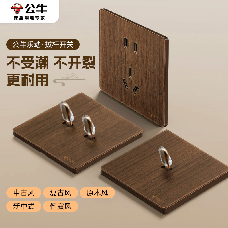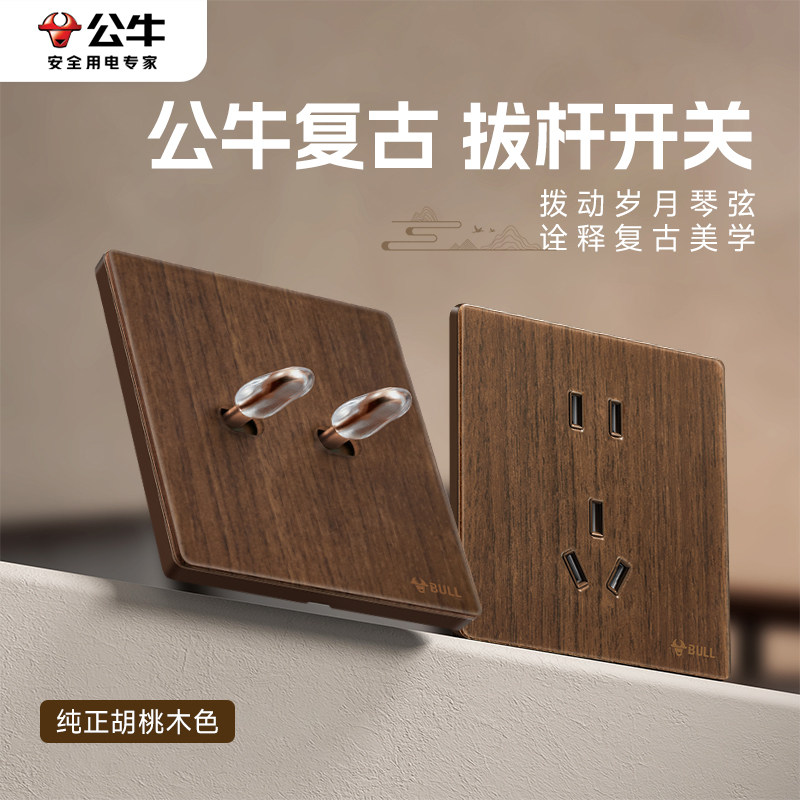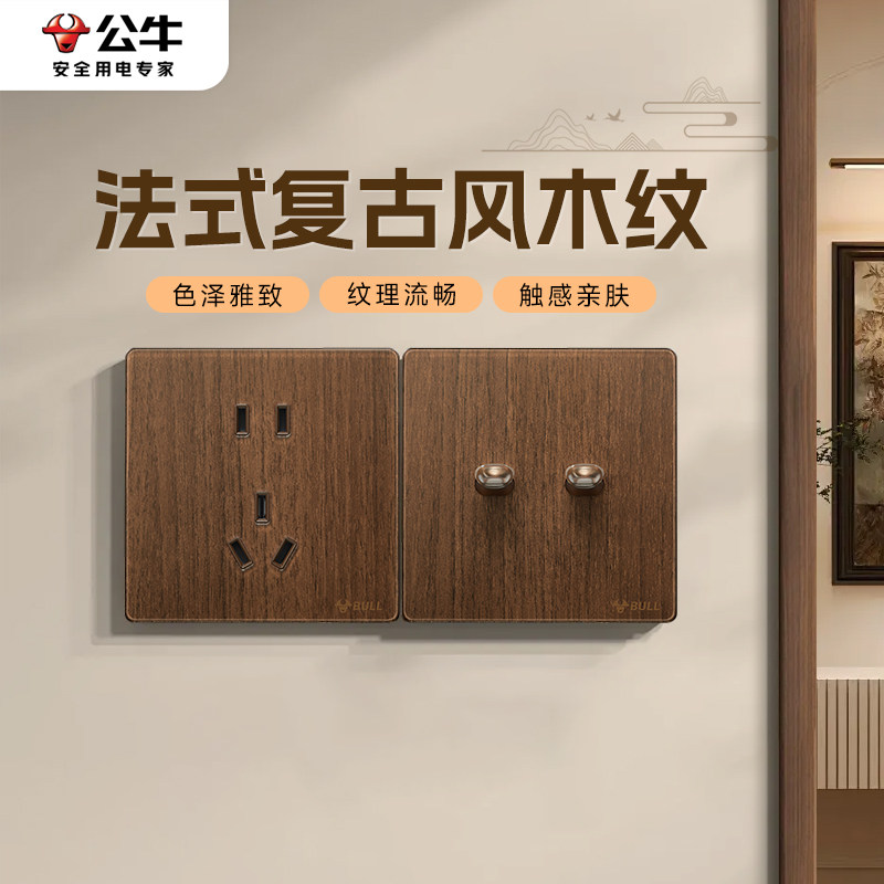 📚 公牛G70超薄拨杆开关胡桃木色五孔插座面板86型复古中古仿木纹