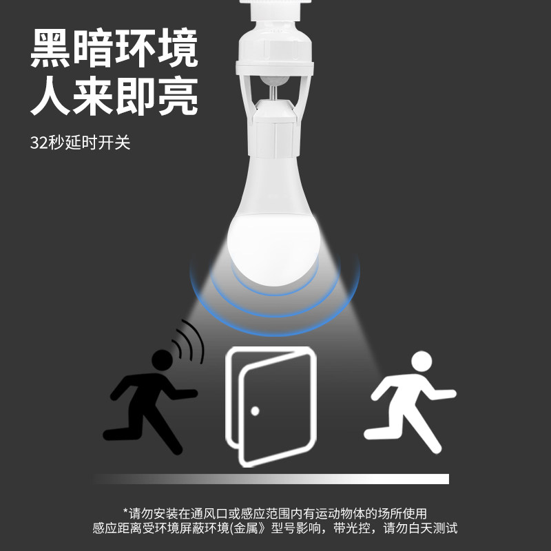 📚 人体感应灯座楼道E27螺口灯头红外线感应灯口夜间自动感应灯开关