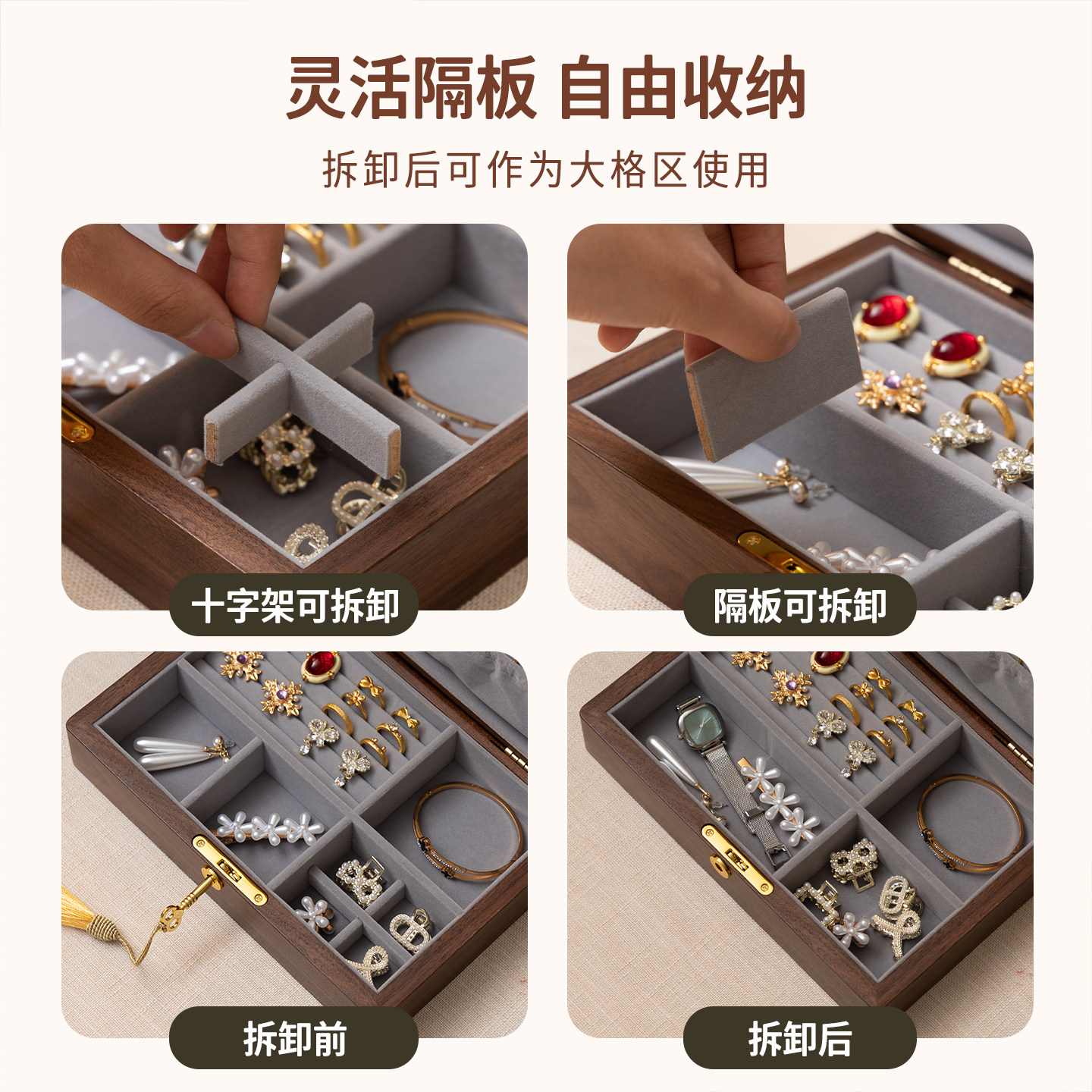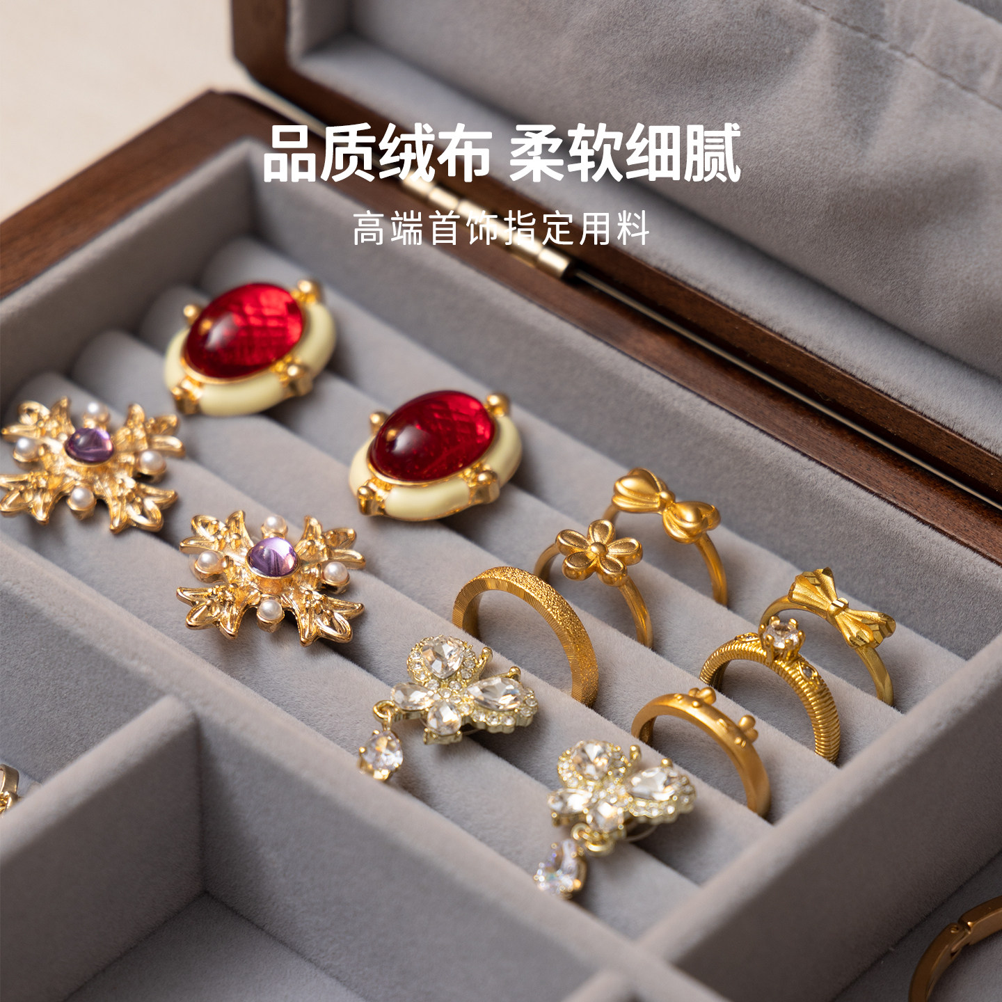 📚 梵瀚 实木首饰收纳盒带锁新年情人节礼物金器黄金珠宝手饰品盒子