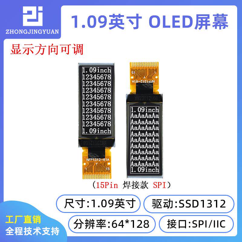 📚 黄保凯中景园1.09寸OLED显示屏12864液晶屏oled SSD1312驱动SPI口