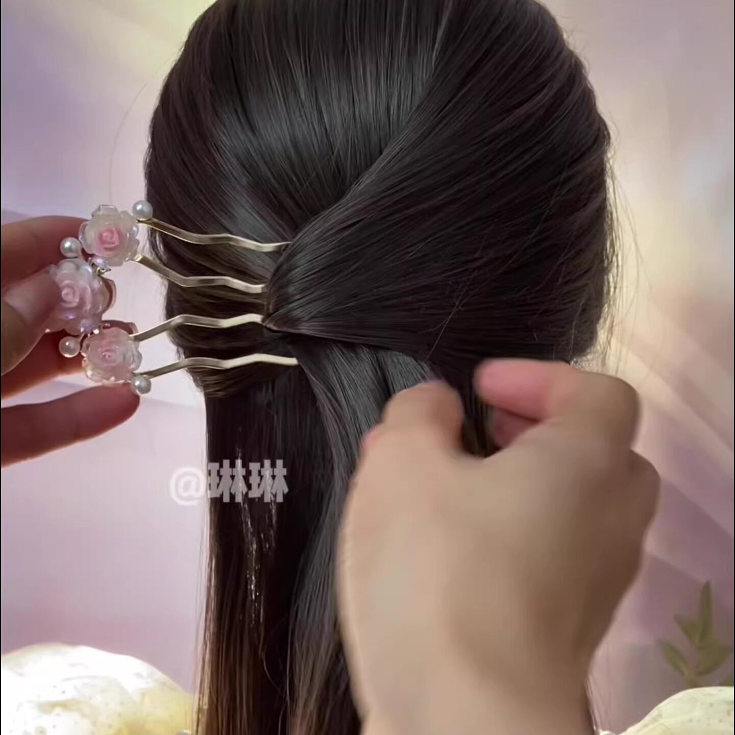 📚 玫瑰花发簪高级感珠珠梳发珍珠古风气质发钗中式簪子盘发短款头饰