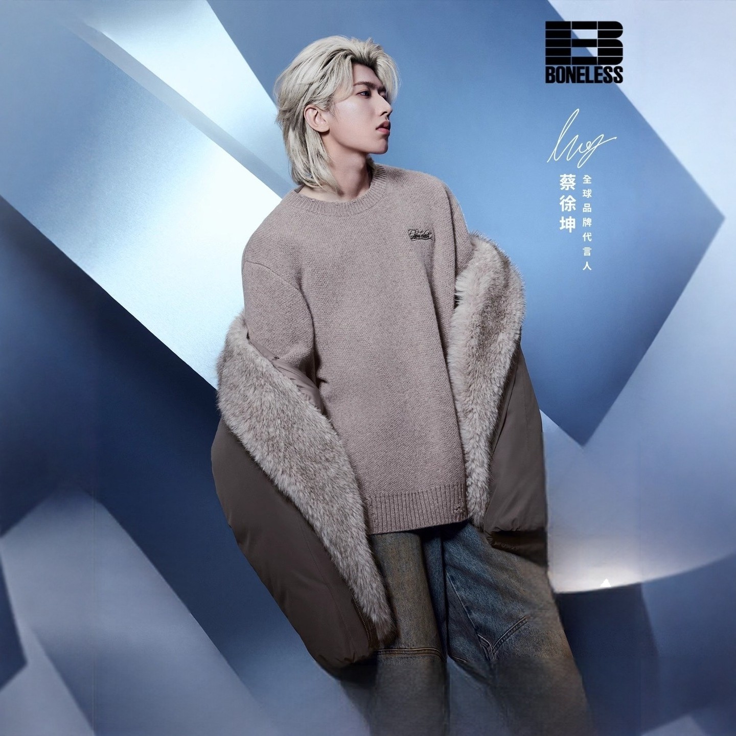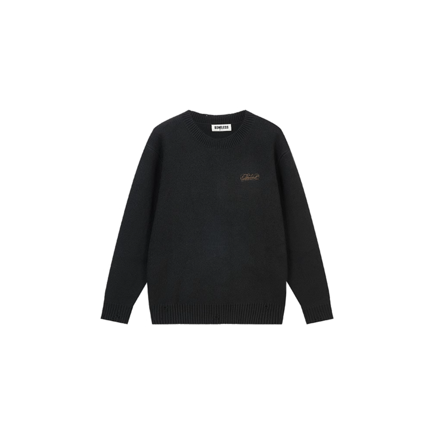 📚 【蔡徐坤同款】BONELESS徽章刺绣破洞毛衣百搭弹力复古百搭针织衫