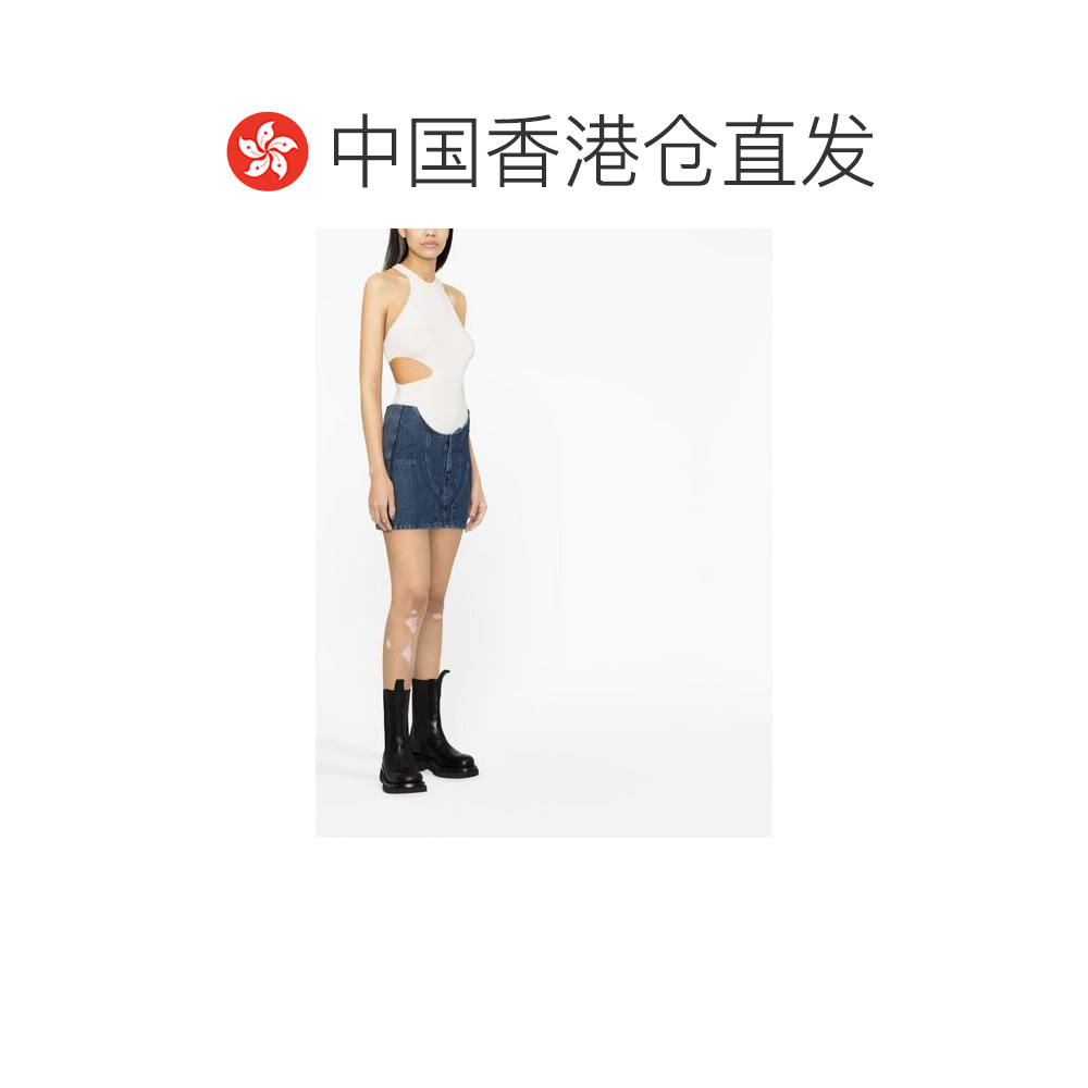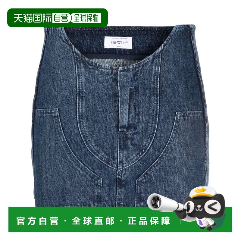 📚 1h可退 香港直邮off-white 女士 蓝色 Motorcycle Hole 牛仔短裙