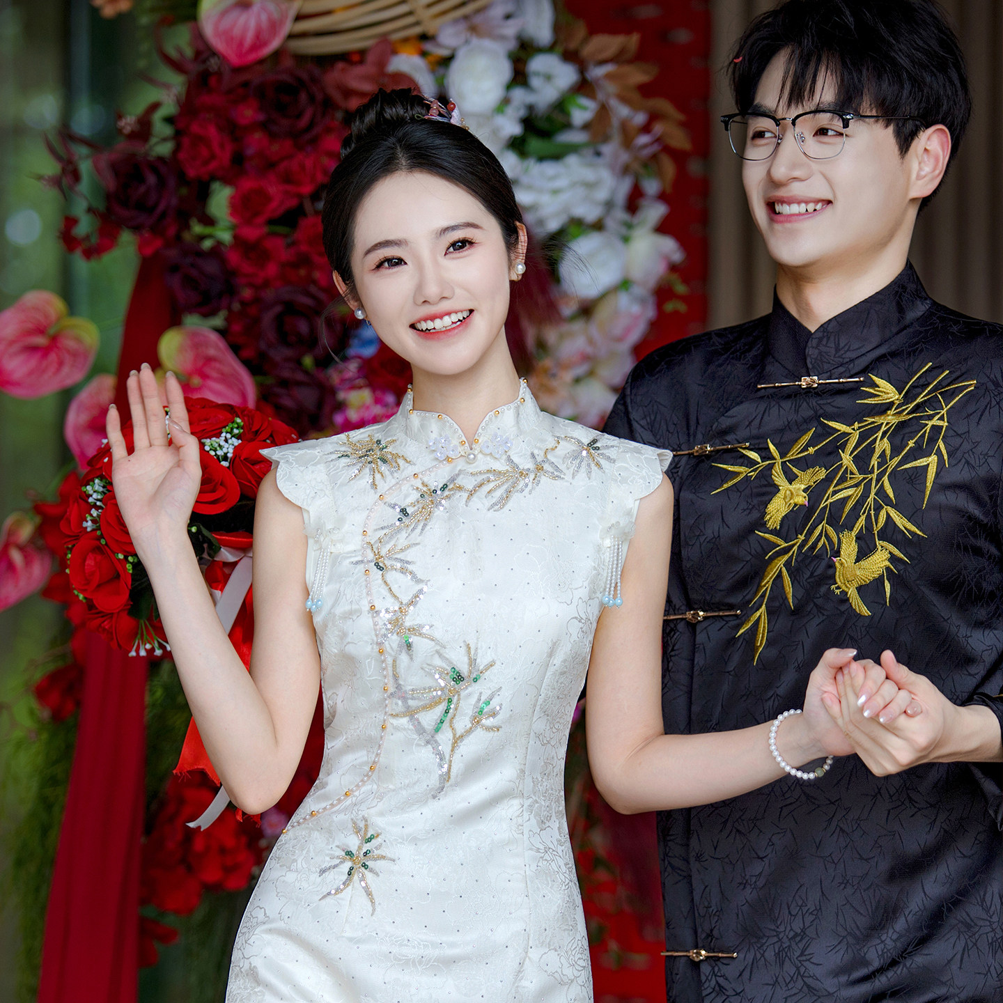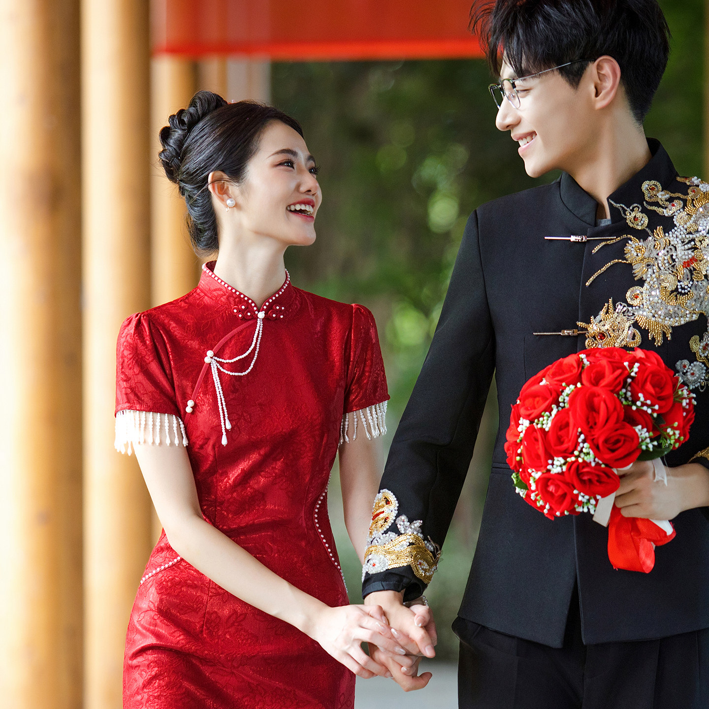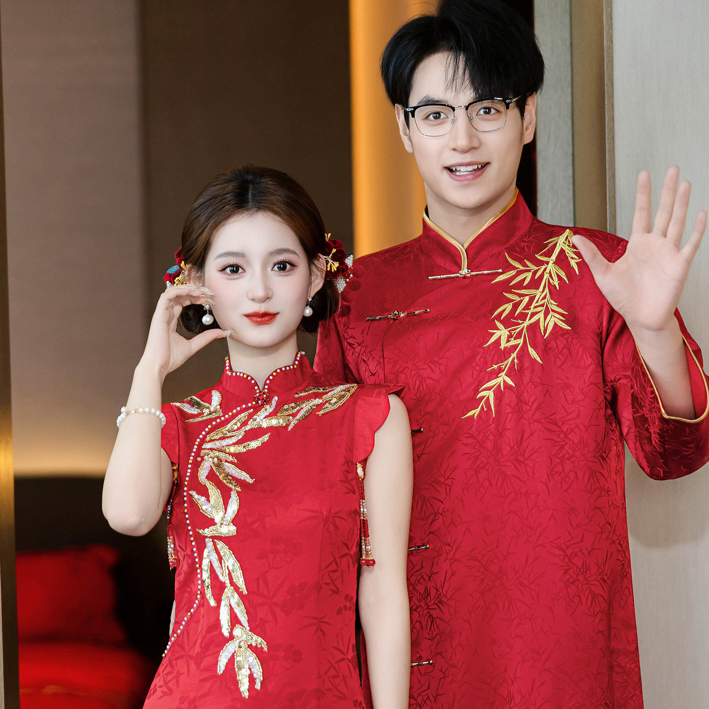 📚 敬酒服新娘新郎旗袍新中式订婚红色礼服裙2025新款冬季回门出阁宴
