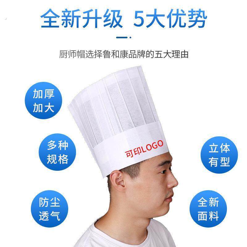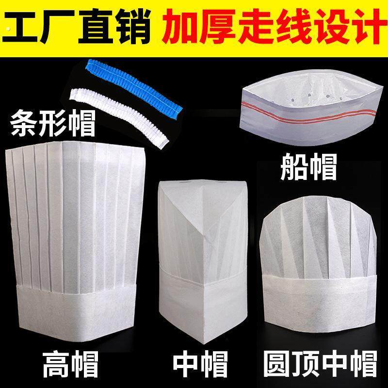 📚 一次性无纺布厨师高帽男款厨房大厨工作帽蛋糕店烘焙西餐主厨帽子