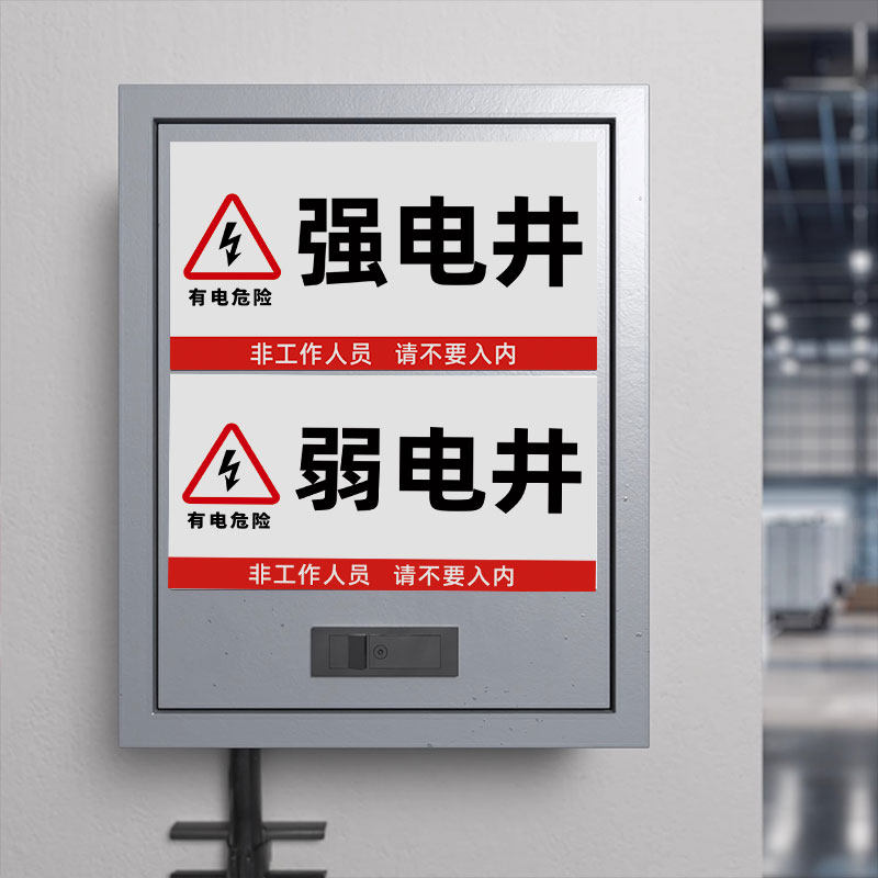 📚 强弱电井门贴纸强电井标识牌非工作人员禁止入内标牌配电间警示安全标识贴强电间弱电井标示贴水管井电井门贴