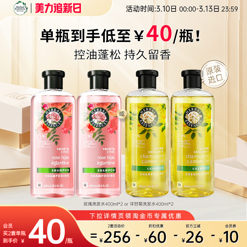 59¥ CZ225 iTePUviYIGo¥ https://m.tb.cn/h.iWC30FB Herbal伊卡璐玫瑰洗发水洋甘菊无硅油控油蓬松持久留香官方进口 --------------------- 【原售价】618元 【现售价】128元。