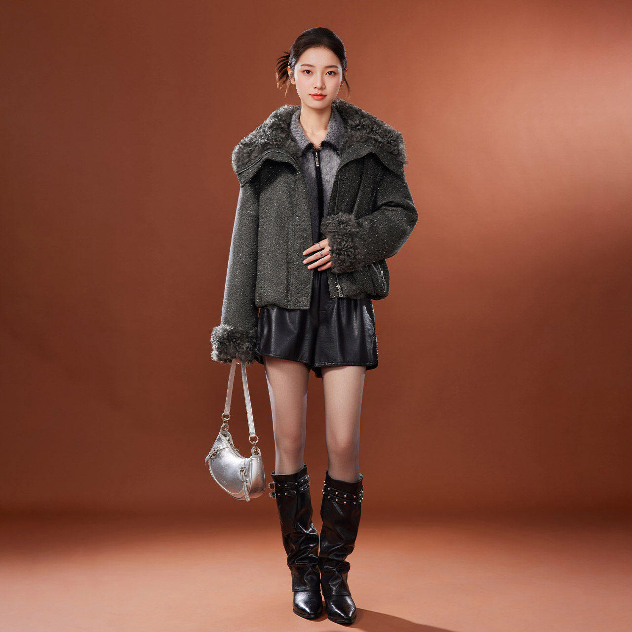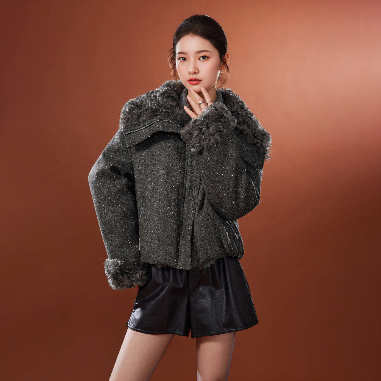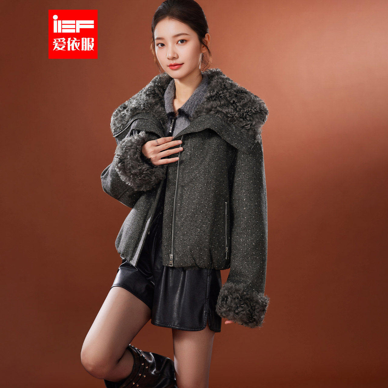 📚 IEF/爱依服2026冬季新款简约现代风大毛领翻领时尚精致短款羽绒服