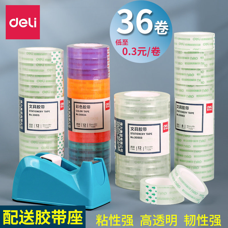 📚 得力学生透明胶带单面胶复写手改错题粘错字小号易撕胶条修正粘错字8 12 18mm宽胶布复制黏贴胶强力批发细窄