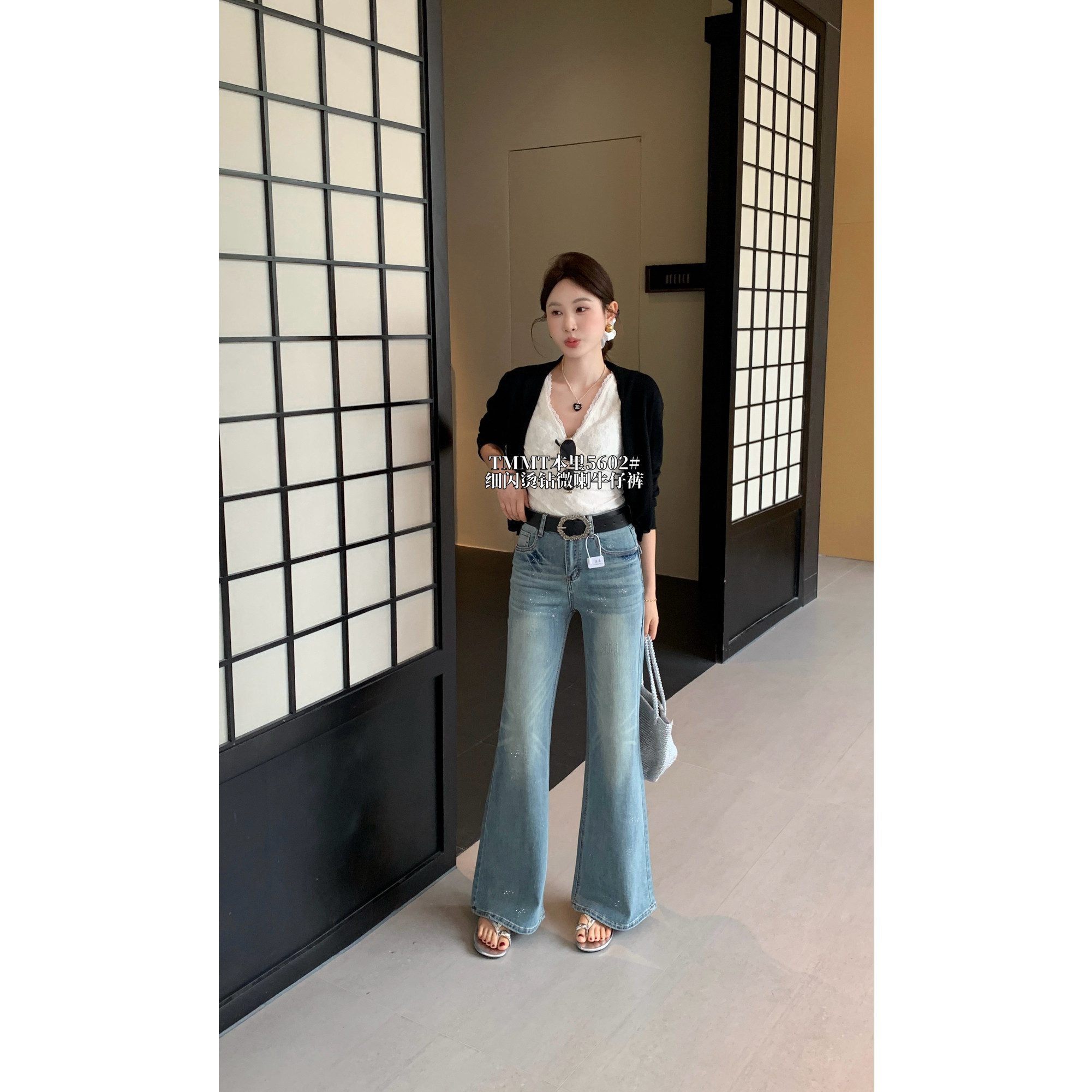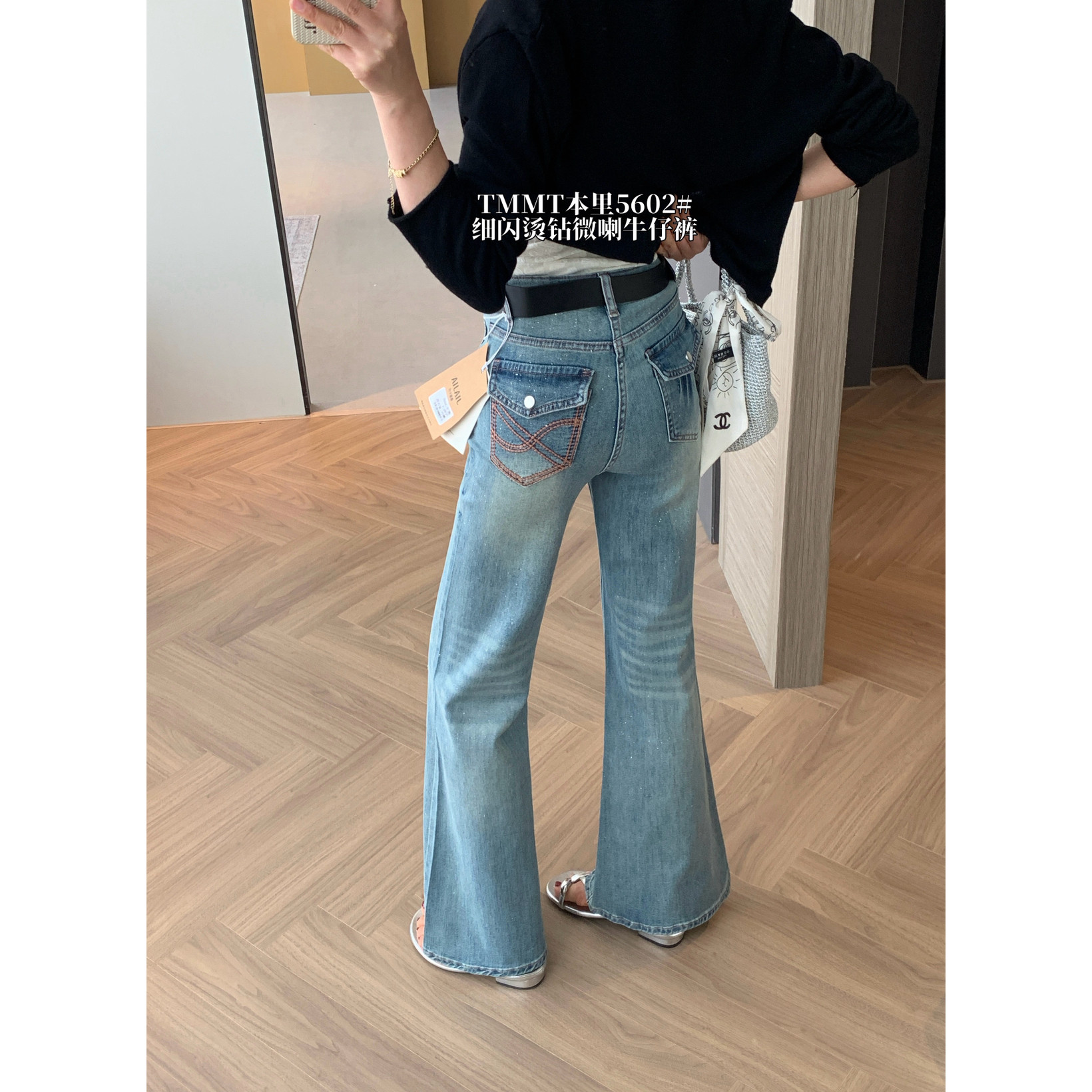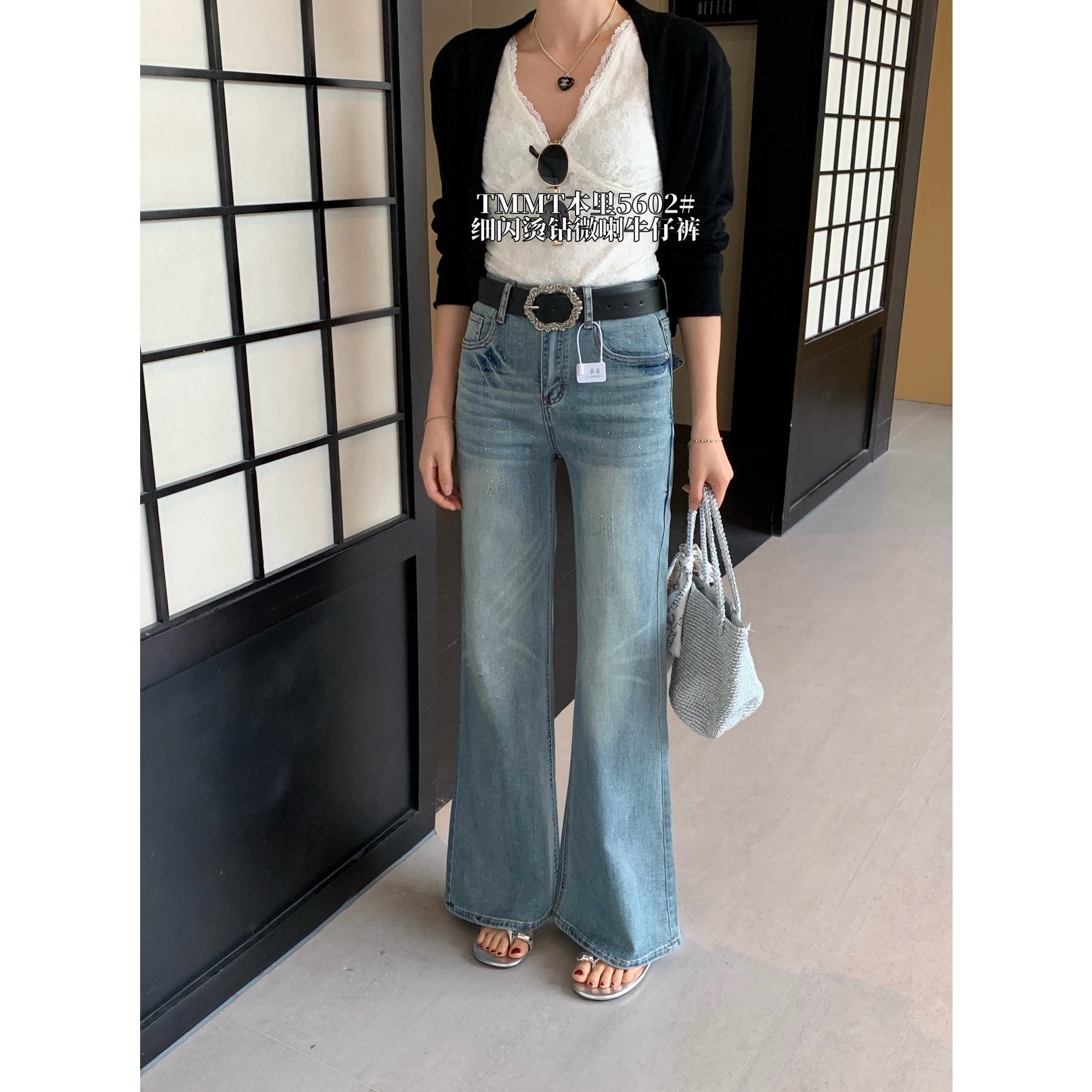📚 JIAJIATMMT木里春款细闪烫金微喇弹力显瘦长裤牛仔裤女配腰带5602